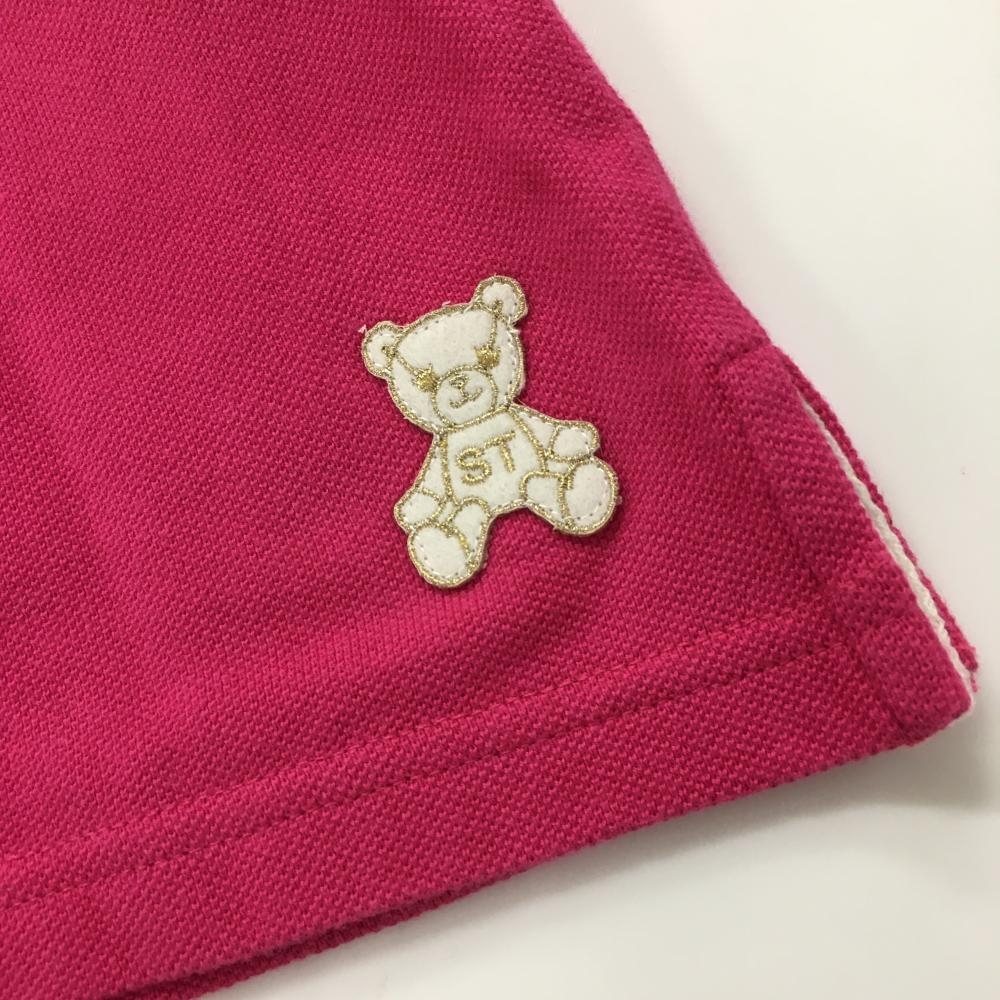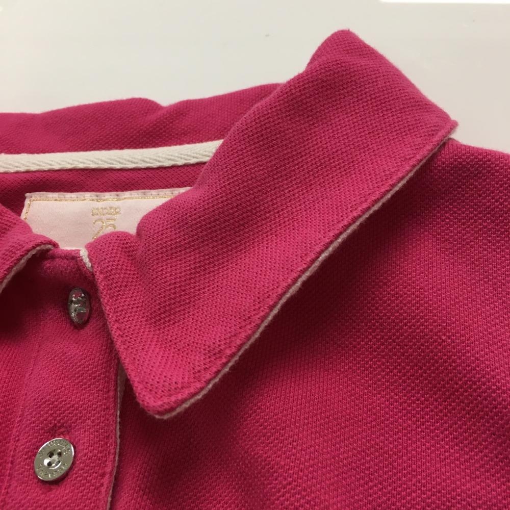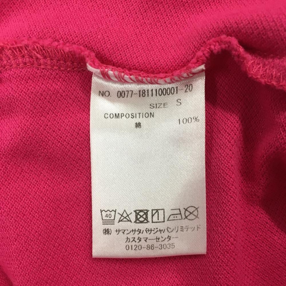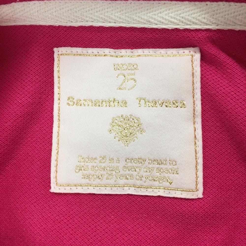 【美品】サマンサタバサUNDER25 半袖ポロシャツ ピンク×白 襟裏ロゴ レディース S ゴルフウェア Samantha Thavasa