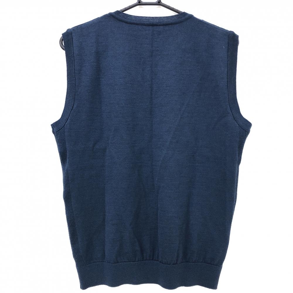 【超美品】カッターアンドバック ニットベスト ネイビー×グレー 一部アーガイル柄 ウール混 Vネック メンズ M ゴルフウェア CUTTER&BUCK