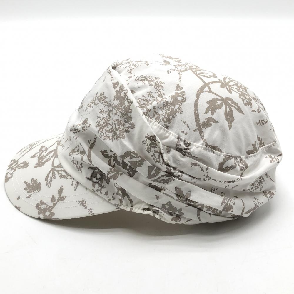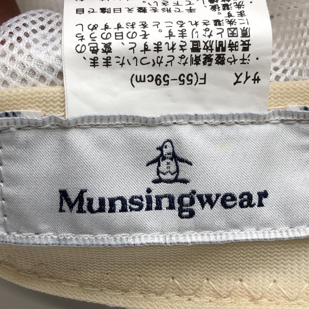 【美品】マンシングウェア キャスケット 白×ベージュ系 総柄 F(55-59cm) ゴルフウェア Munsingwear