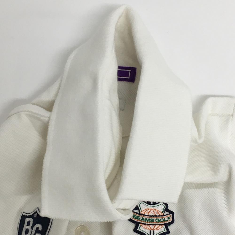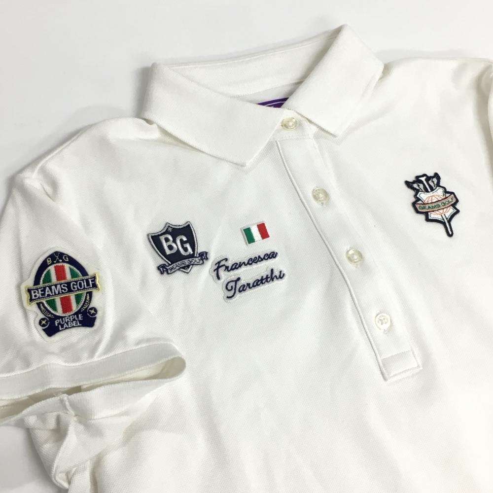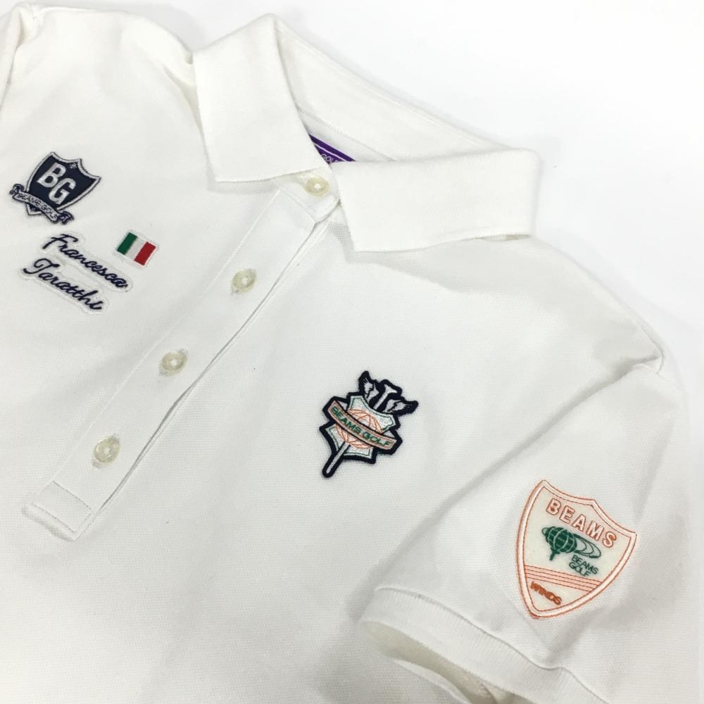 【美品】ビームスゴルフ 半袖ポロシャツ 白 袖ワッペン レディース M ゴルフウェア BEAMS GOLF