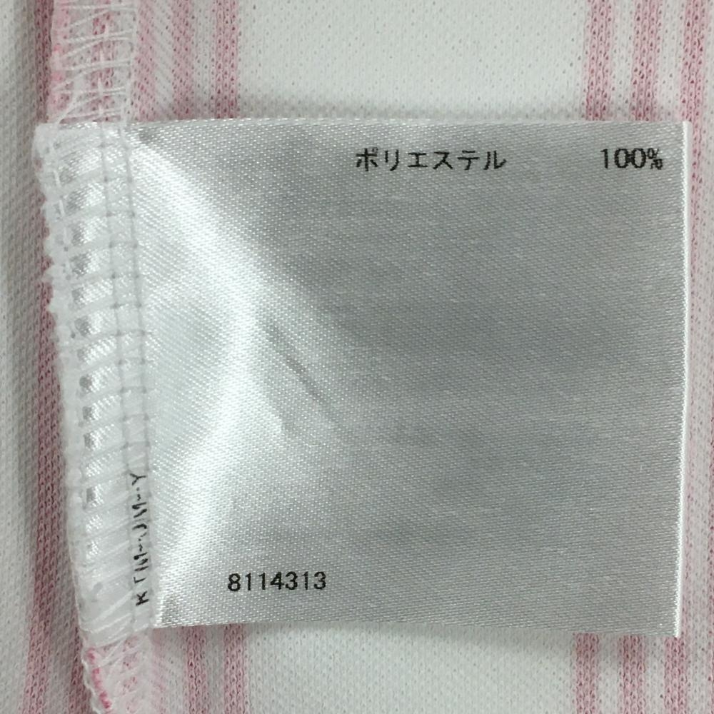 【美品】マンシングウェア ノースリーブポロシャツ 白×ピンク ストライプ ロゴ刺しゅう レディース LL ゴルフウェア Munsingwear