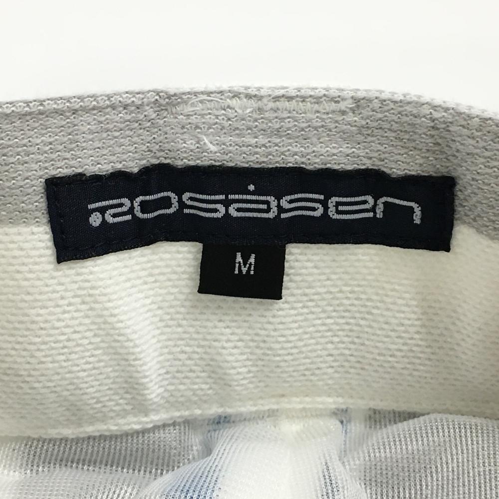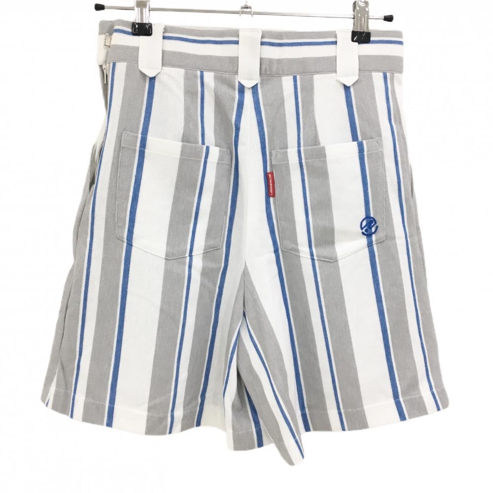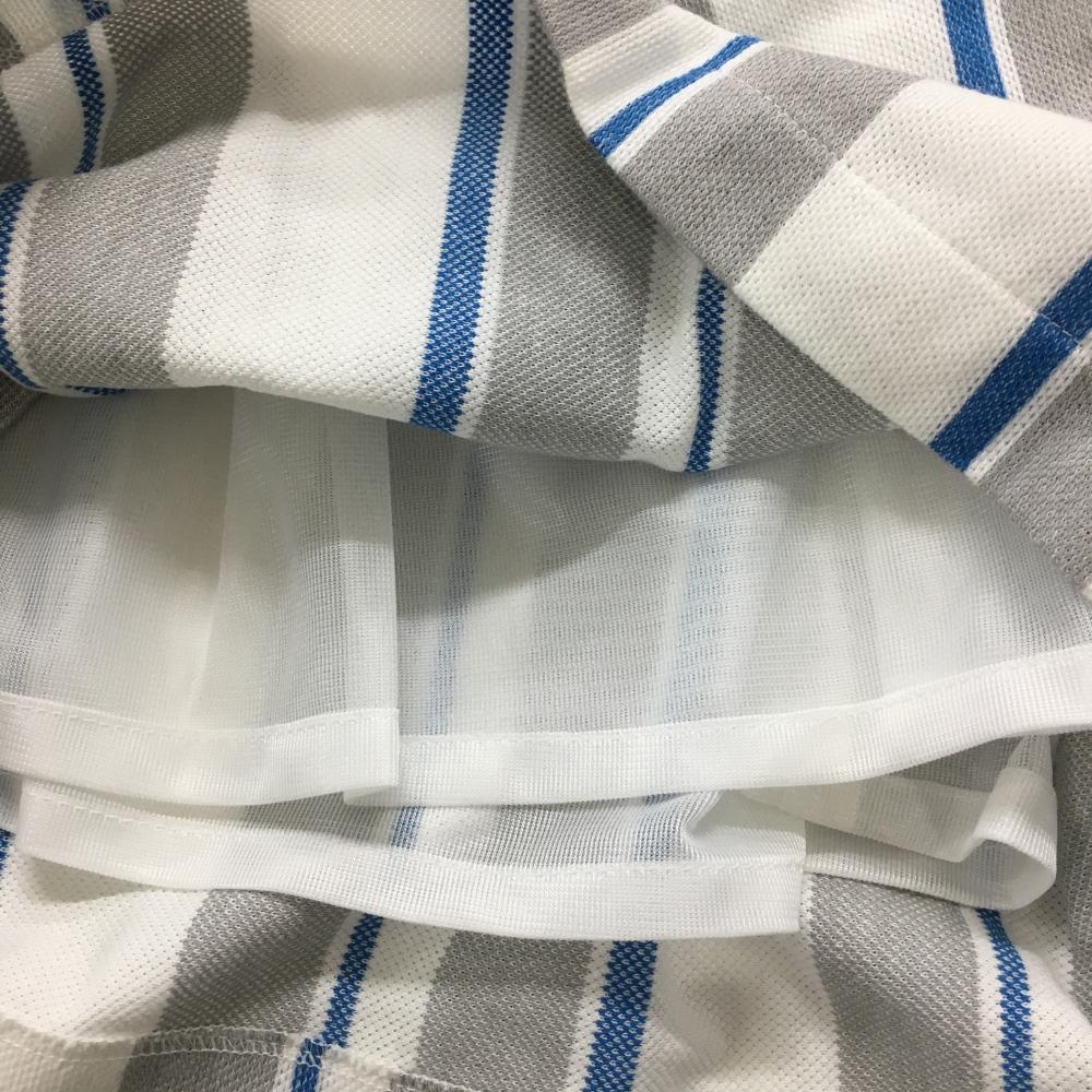 【新品】ロサーセン キュロットスカート 白×グレー×ブルー ストライプ 裏地付 レディース M ゴルフウェア Rosasen