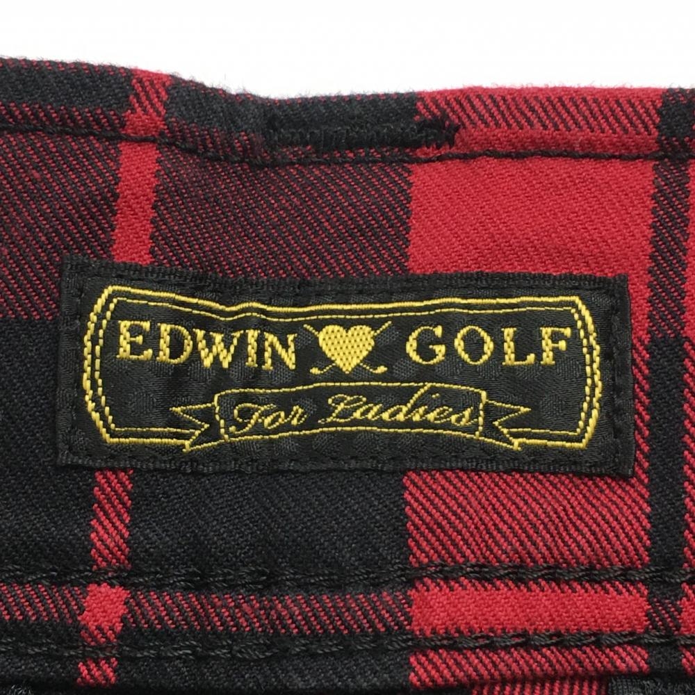 【超美品】エドウィンゴルフ ハーフパンツ レッド×黒 チェック レディース XS ゴルフウェア EDWIN GOLF