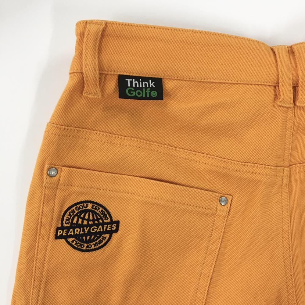 【美品】パーリーゲイツ ハーフパンツ オレンジ ロゴネイビー ティー装着可 ストレッチ メンズ 3(S) ゴルフウェア PEARLY GATES