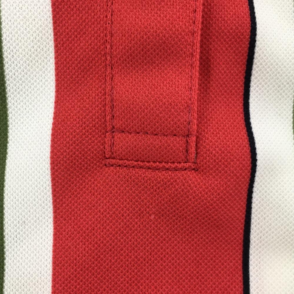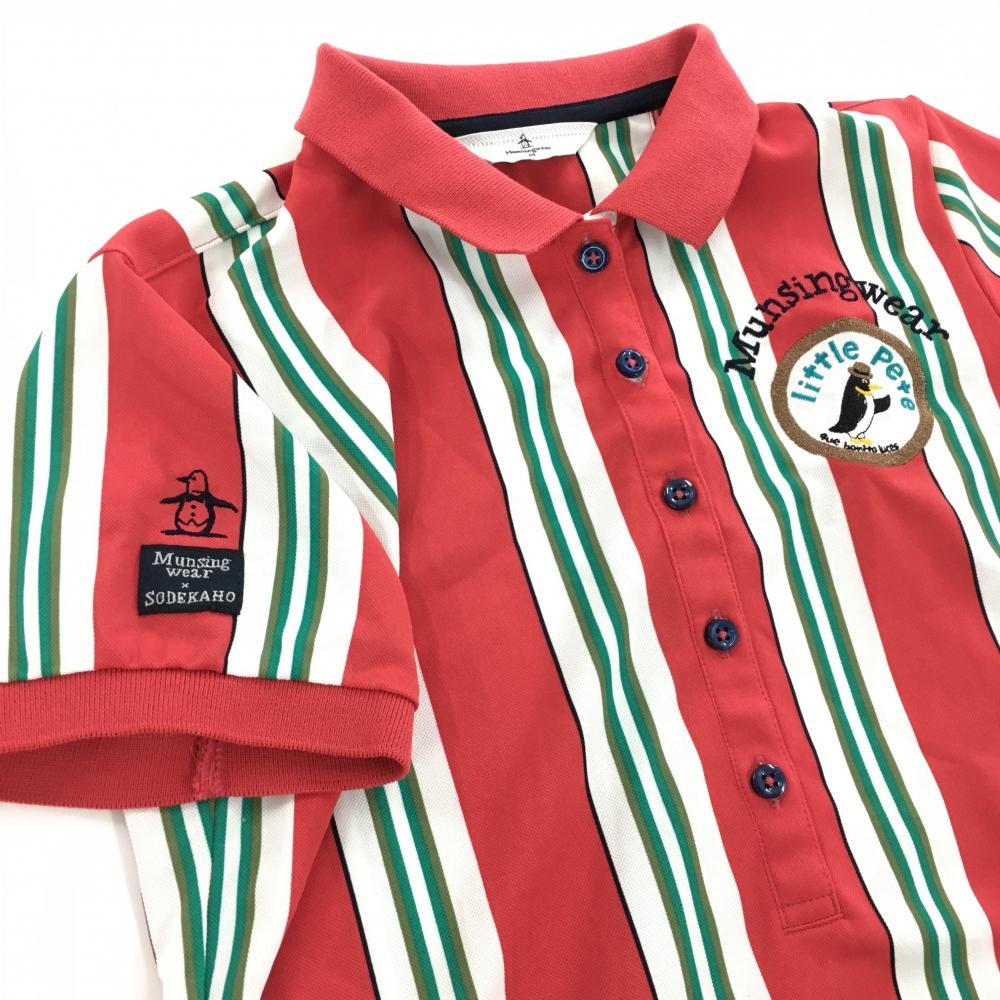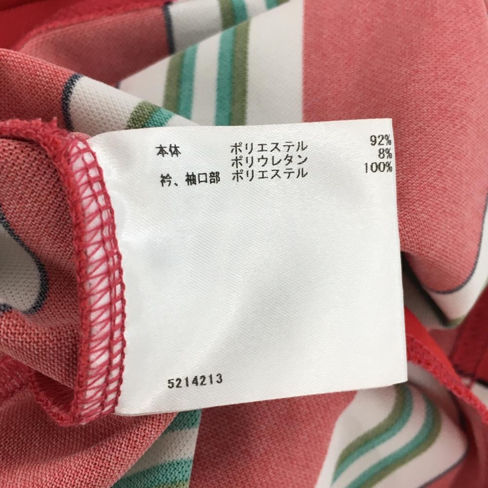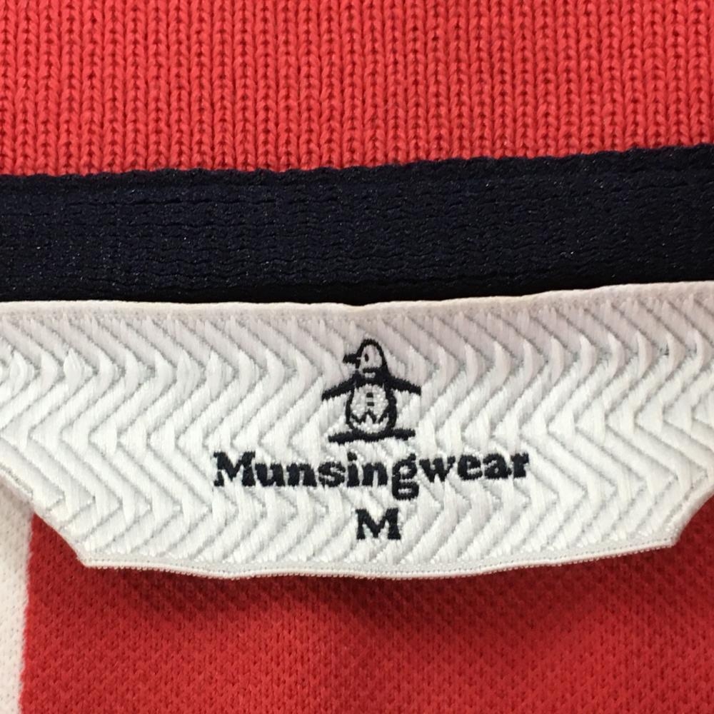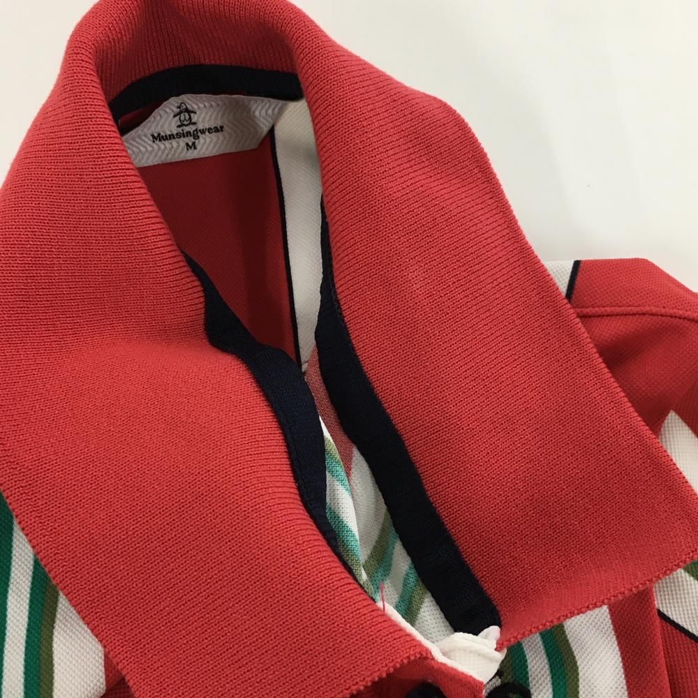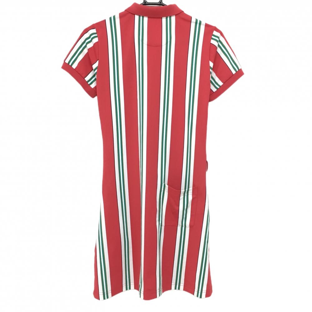 マンシングウェア 半袖ポロワンピース ピンクレッド×白 ストライプ 胸元ロゴ レディース M ゴルフウェア Munsingwear