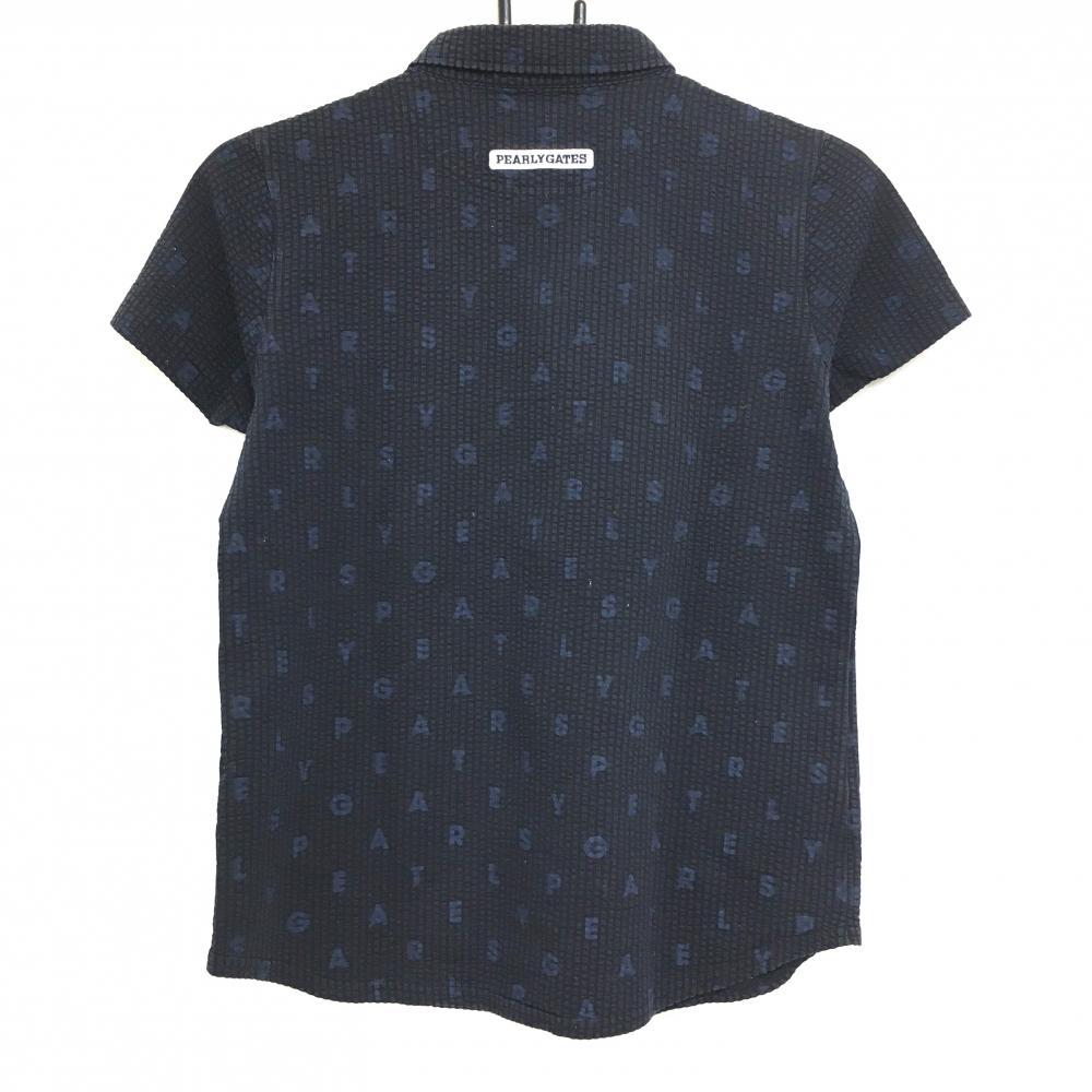 パーリーゲイツ 半袖ポロシャツ ダークネイビー ロゴ総柄 サッカー調生地 レディース 1(M) ゴルフウェア PEARLY GATES