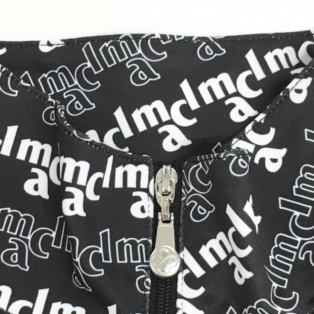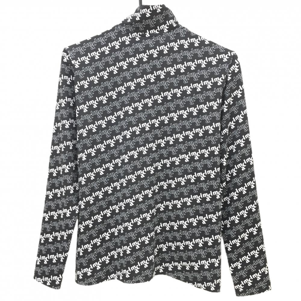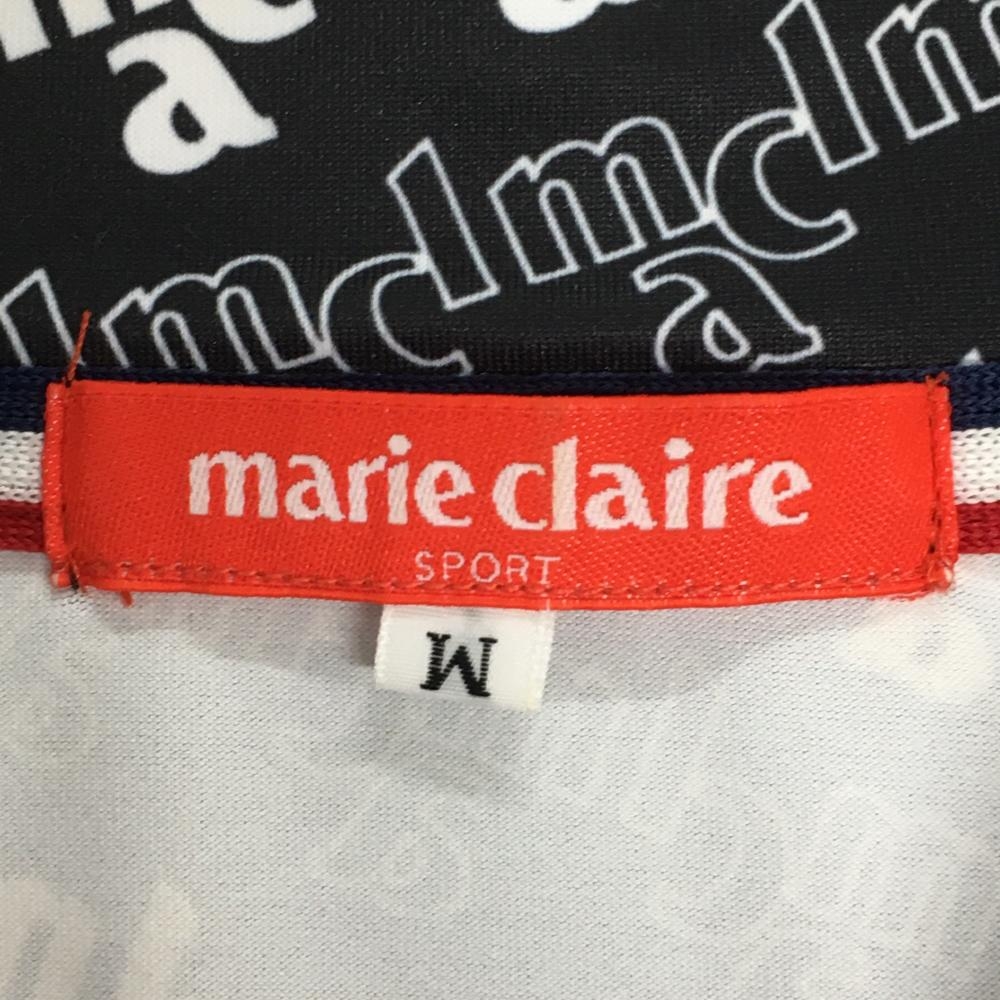 【超美品】マリクレール 長袖ハイネックシャツ 黒×白 ロゴ総柄 ハーフジップ レディース M ゴルフウェア marie claire