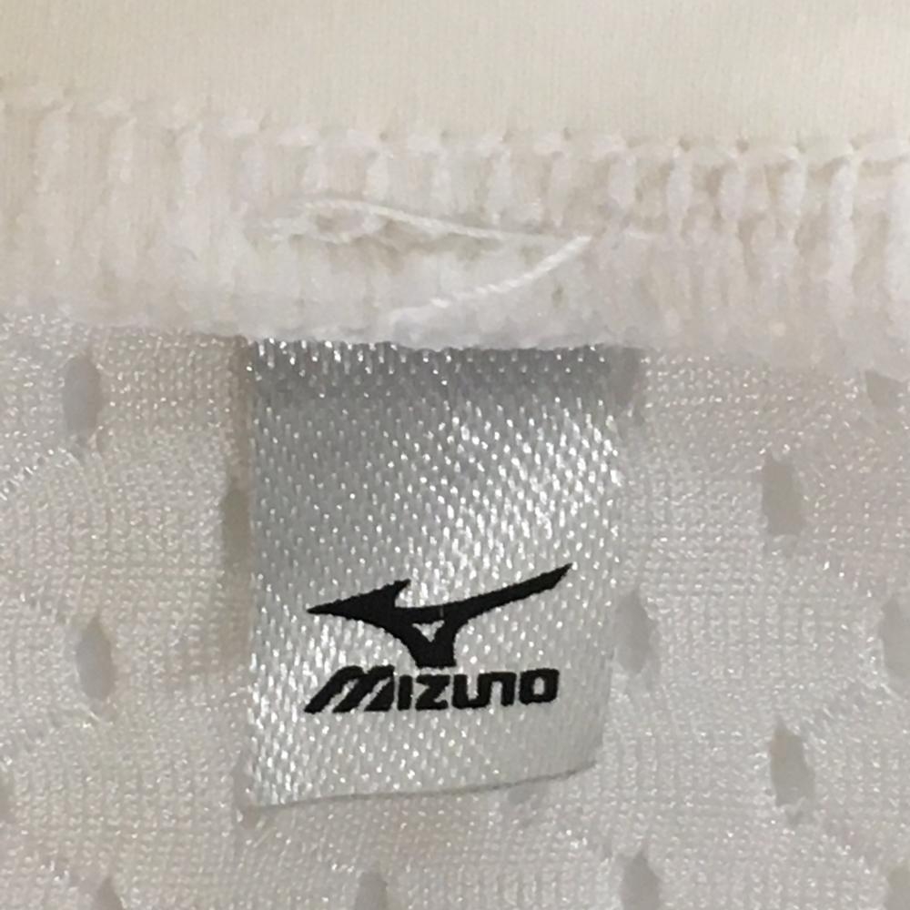 【超美品】ミズノ ハイネックインナーシャツ 白 ネックロゴプリント 一部メッシュ レディース O ゴルフウェア MIZUNO