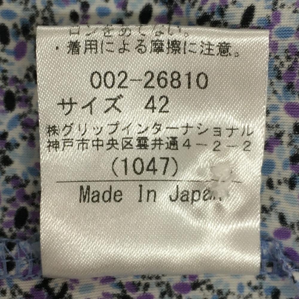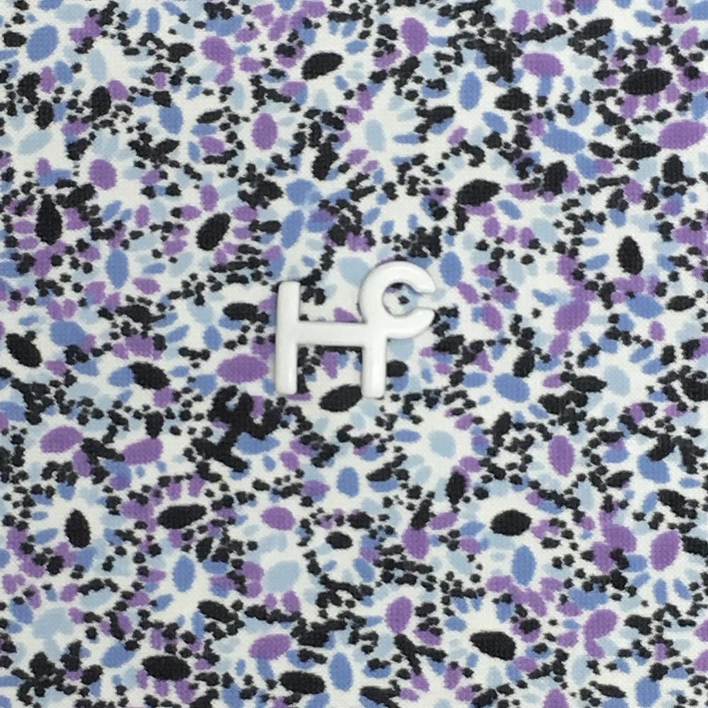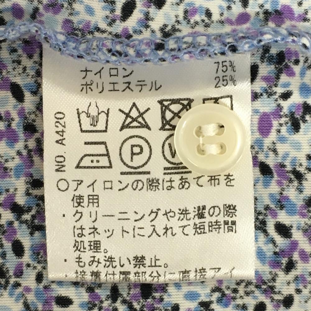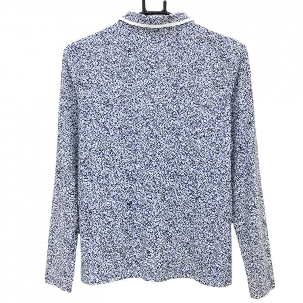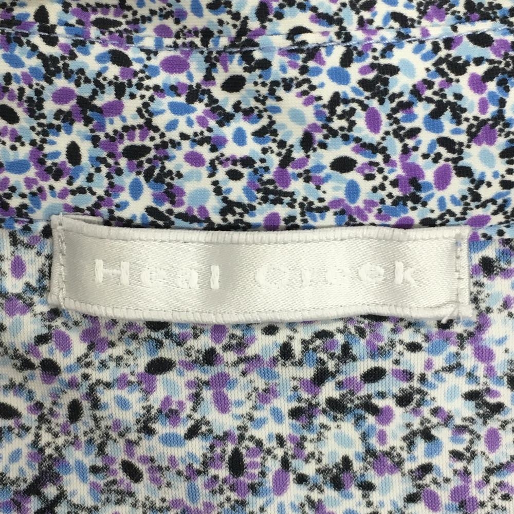 【超美品】ヒールクリーク 長袖ポロシャツ パープル×ブルー×黒 小花柄 レディース 42(L) ゴルフウェア Heal Creek