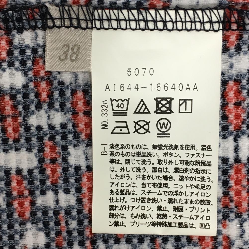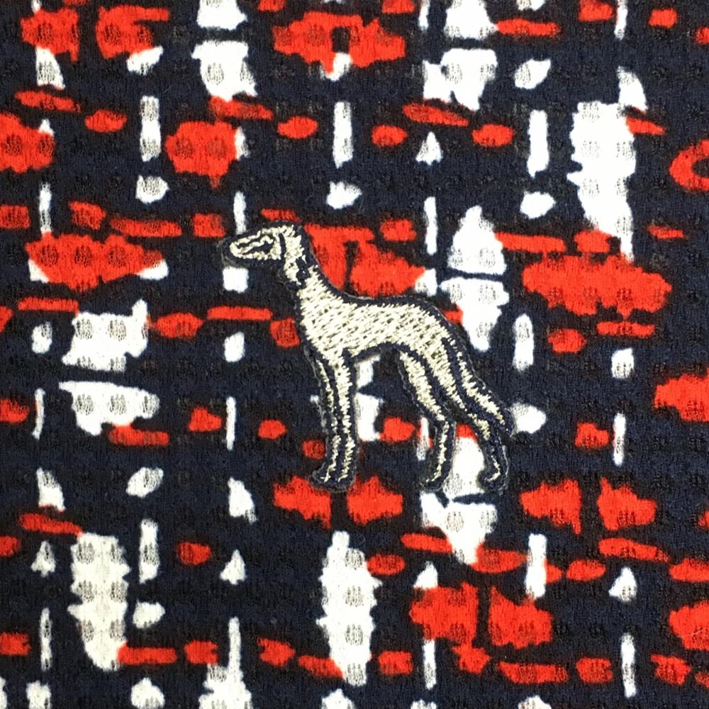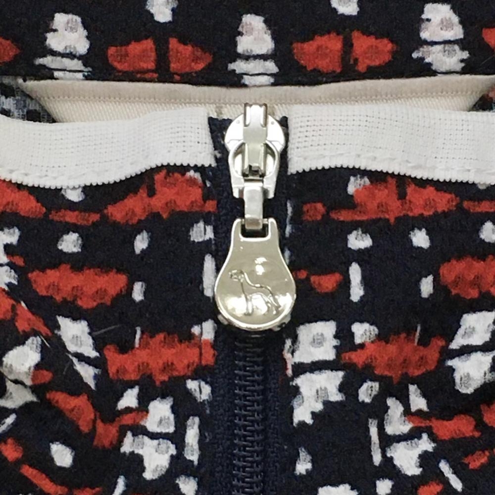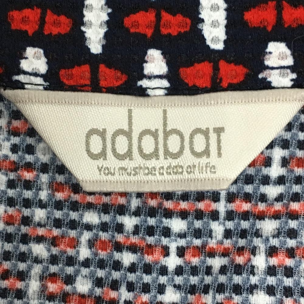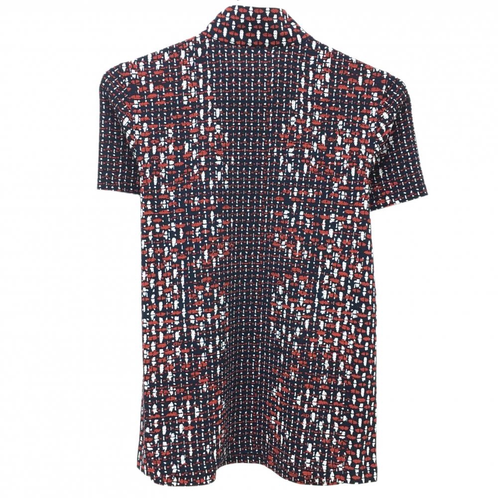 【超美品】アダバット 半袖ハイネックシャツ ネイビー×レッド ツイード風 凸凹生地 ハーフジップ レディース 38(M) ゴルフウェア adabat