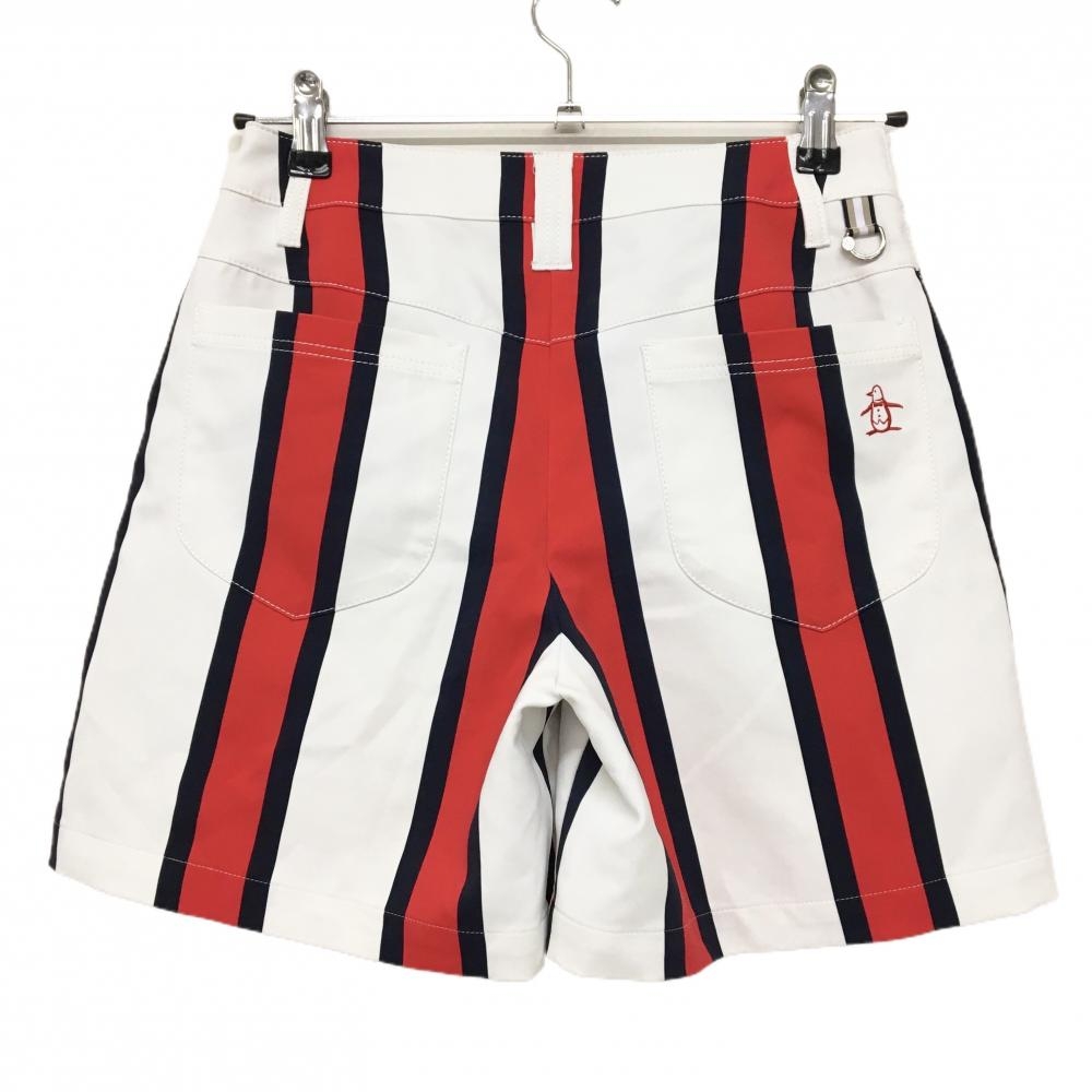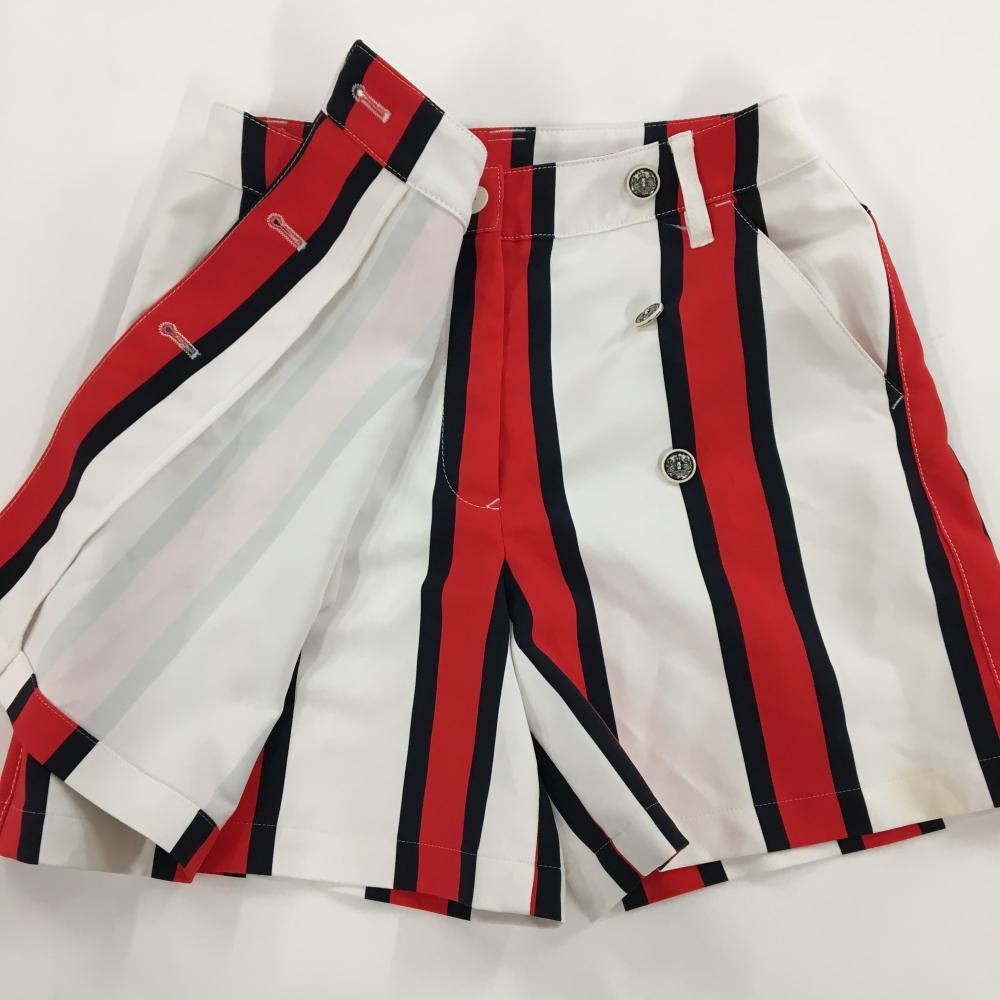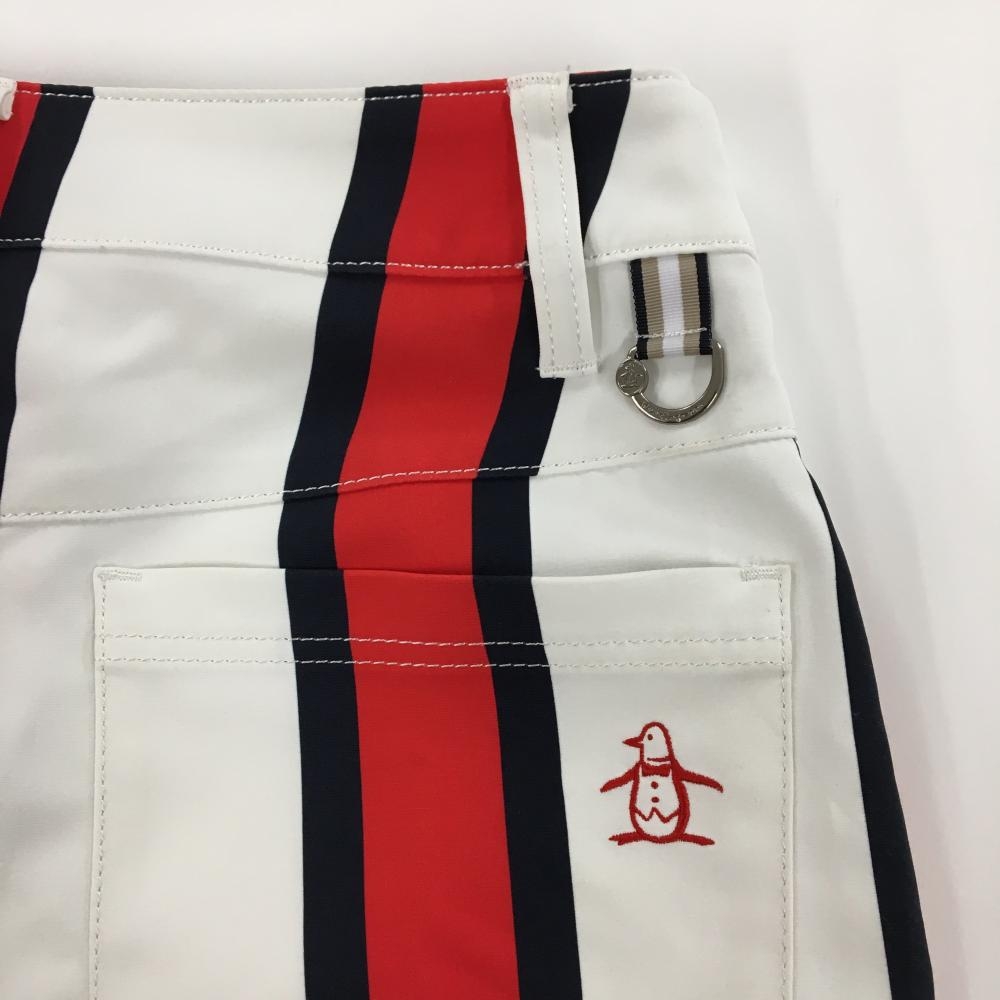 マンシングウェア キュロットスカート 白×レッド ストライプ柄 ラップスカート風 バックロゴ レディース 7 ゴルフウェア Munsingwear