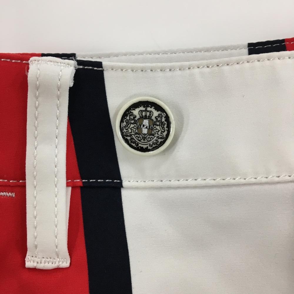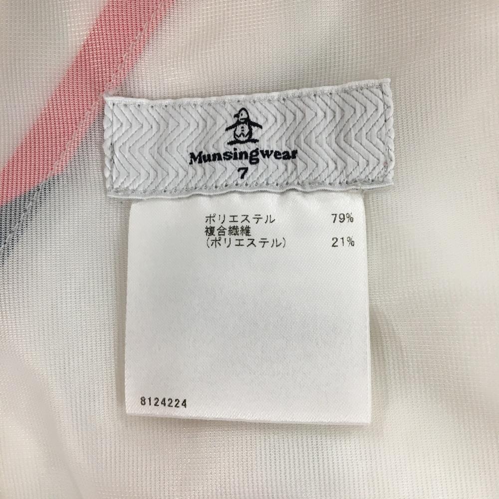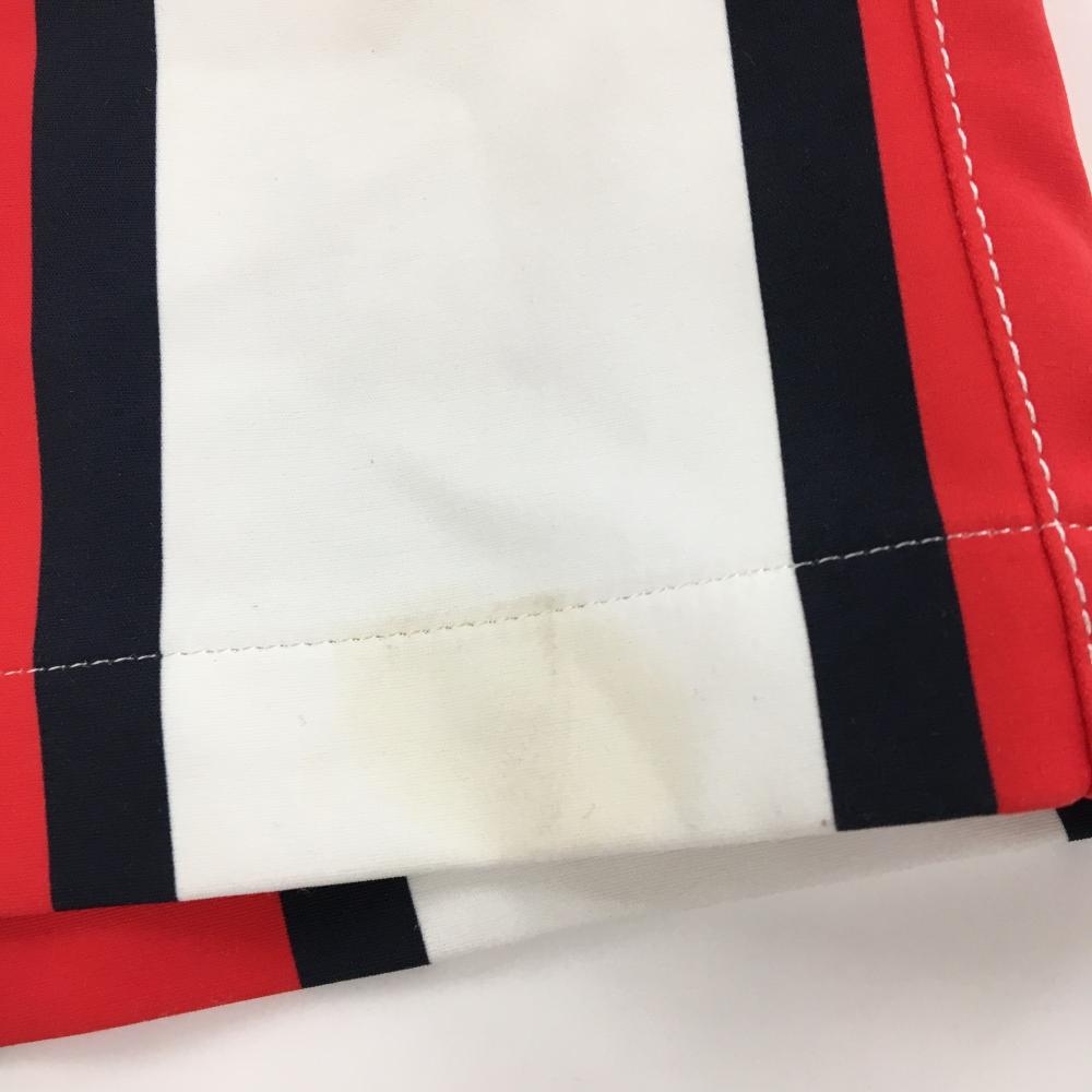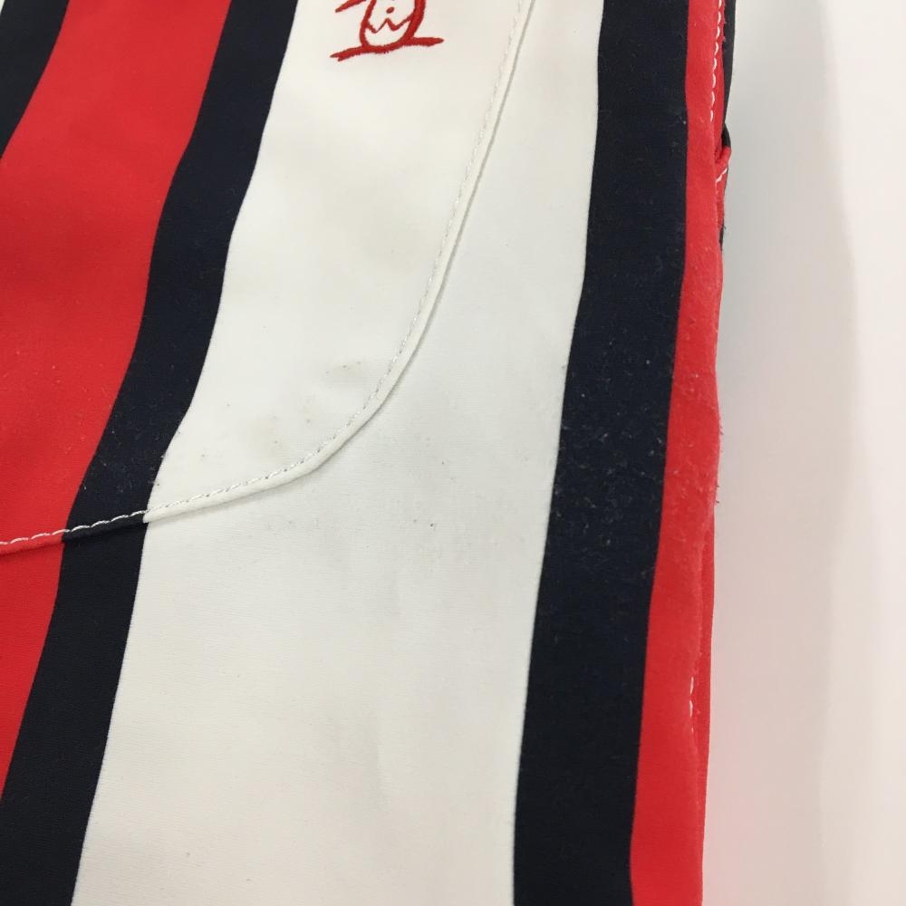 マンシングウェア キュロットスカート 白×レッド ストライプ柄 ラップスカート風 バックロゴ レディース 7 ゴルフウェア Munsingwear