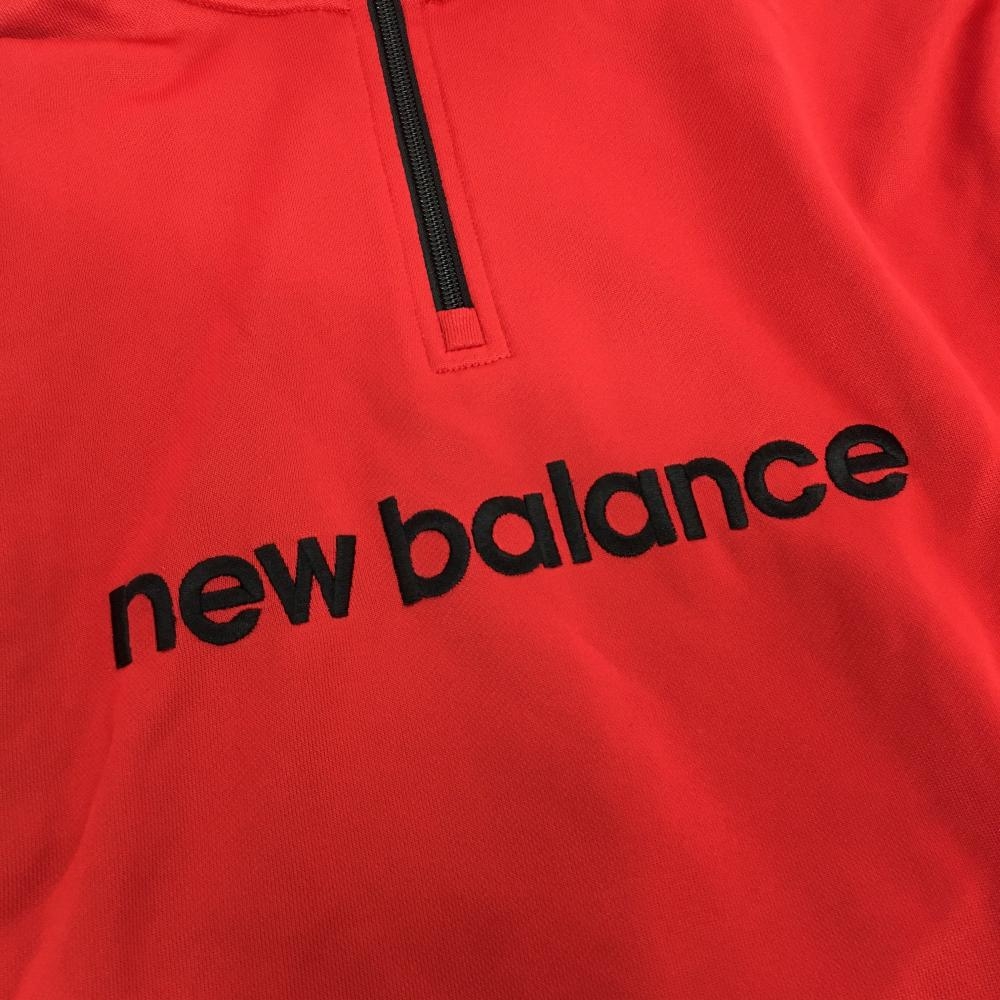 【美品】ニューバランス ハイネックトレーナー レッド×黒×白 ハーフジップ フロントロゴ メンズ L ゴルフウェア New Balance