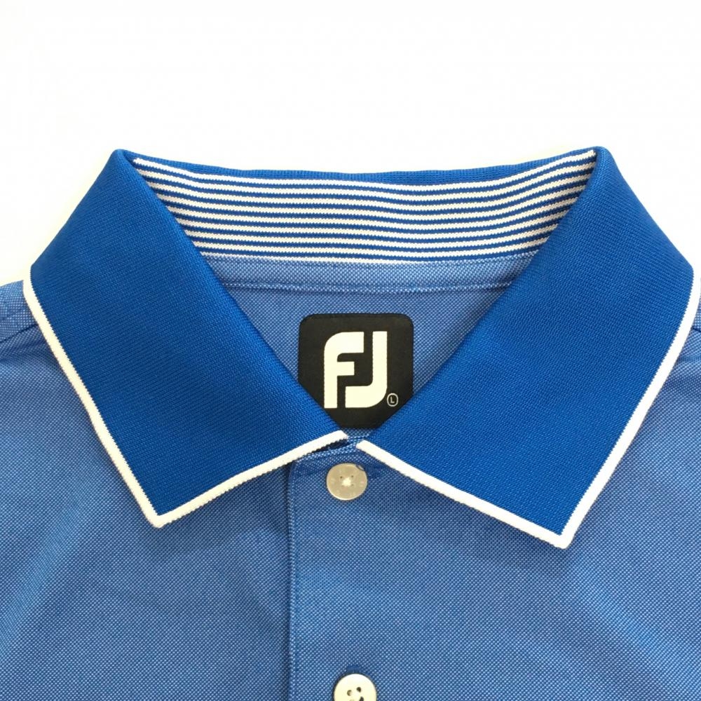 【美品】フットジョイ 半袖ポロシャツ ブルー 襟裏一部ボーダー メンズ L ゴルフウェア FootJoy
