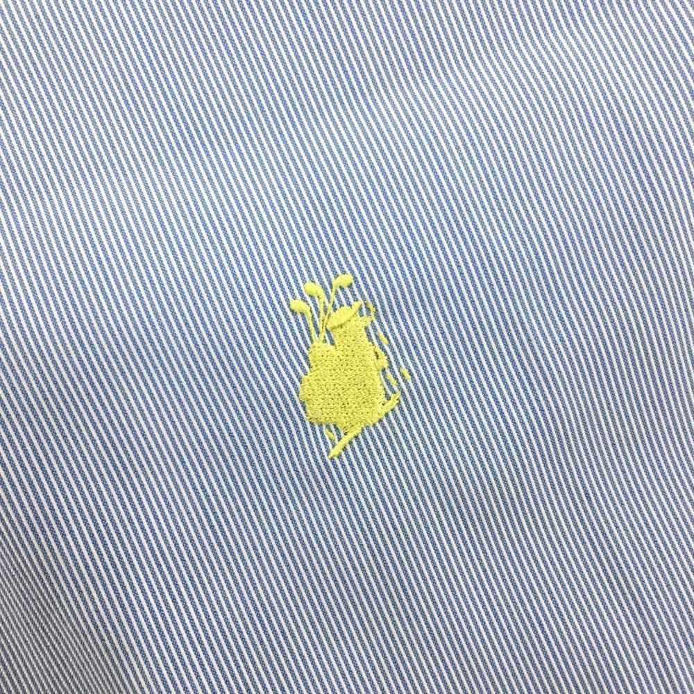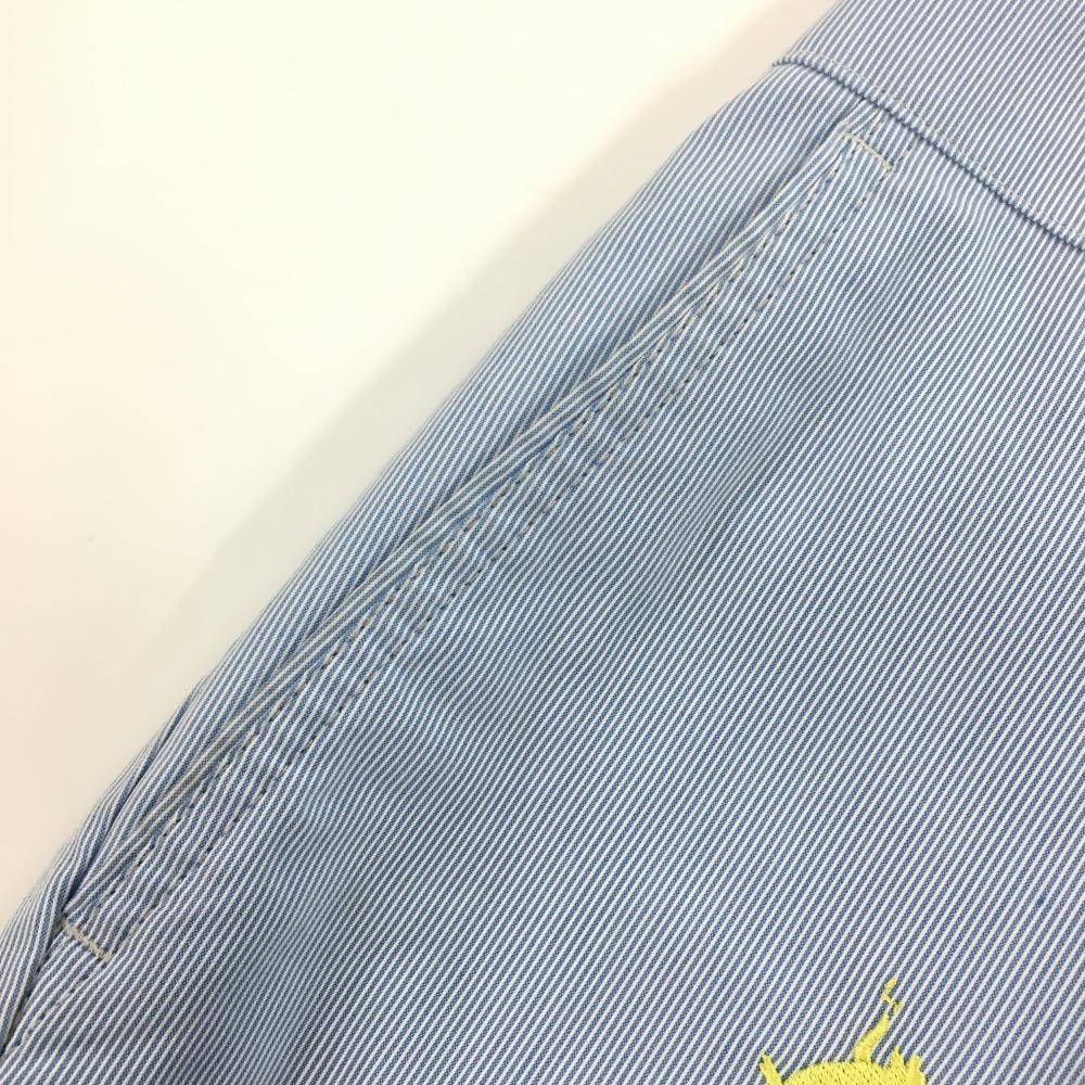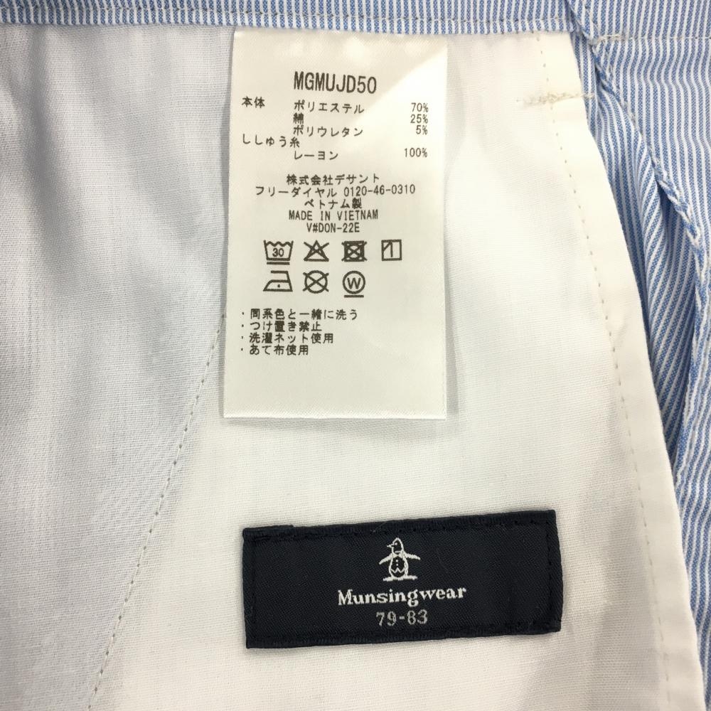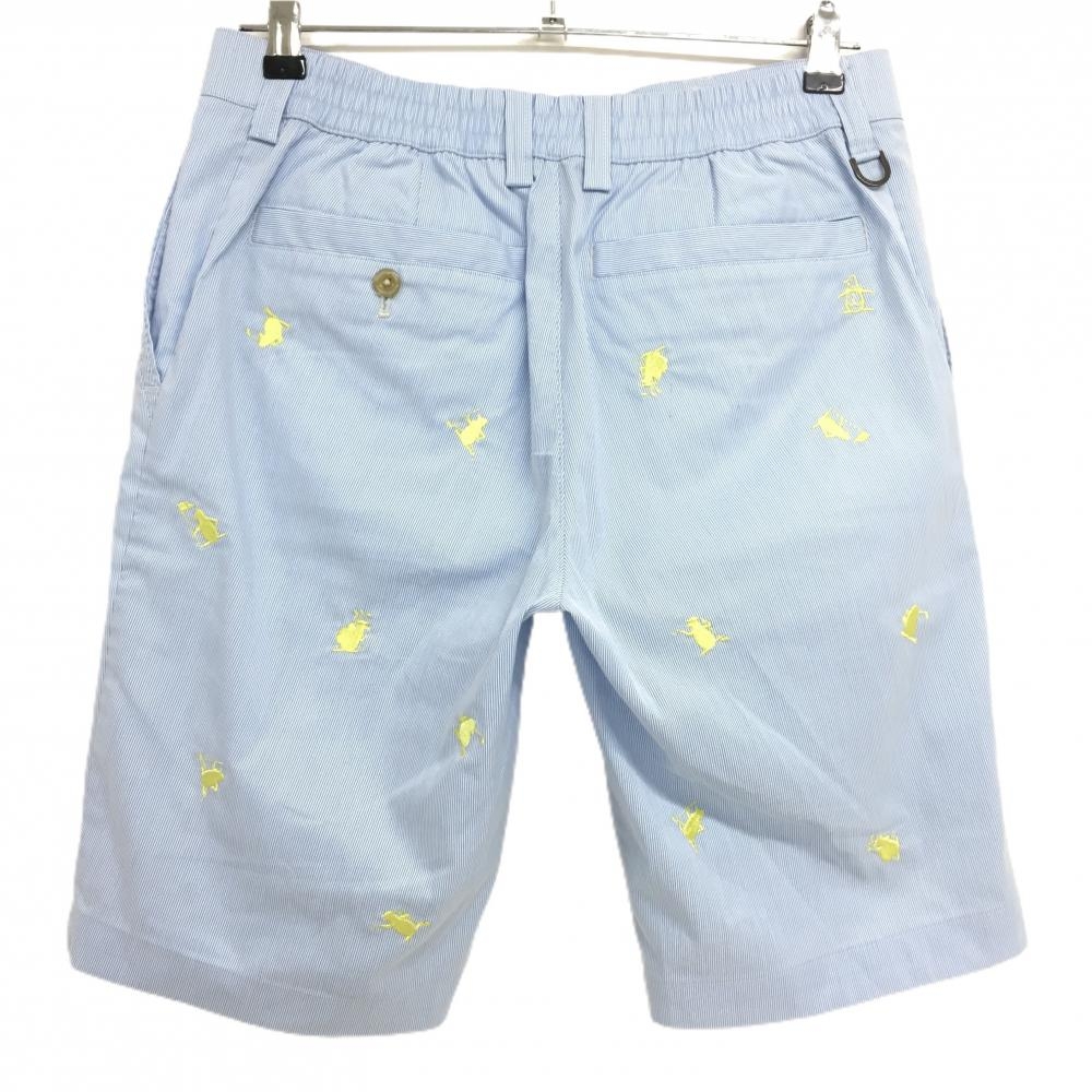 マンシングウェア ハーフパンツ ライトブルー×白 細ストライプ ペンギン刺しゅうイエロー メンズ M ゴルフウェア Munsingwear