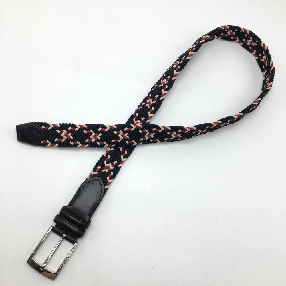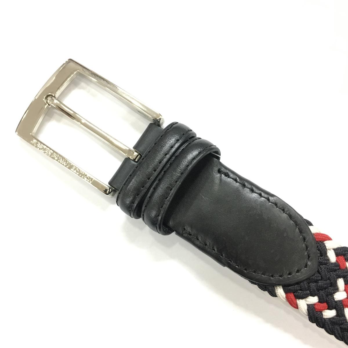 【美品】マスターバニー 編込みベルト ネイビー×レッド 伸縮 レザー部傷 メンズ ゴルフウェア MASTER BUNNY EDITION