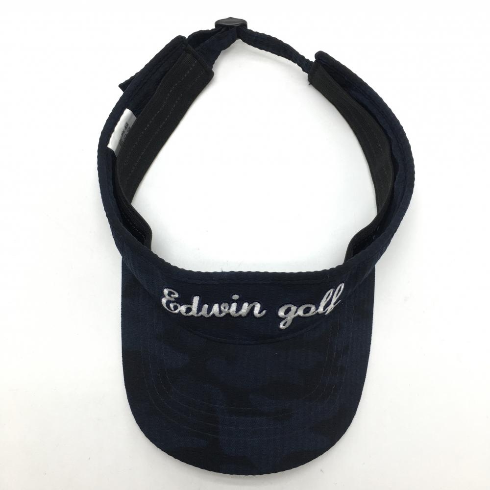 【超美品】エドウィンゴルフ サンバイザー ネイビー×黒 迷彩柄 カモフラ ロゴ刺しゅう SIZE FREE ゴルフウェア EDWIN GOLF