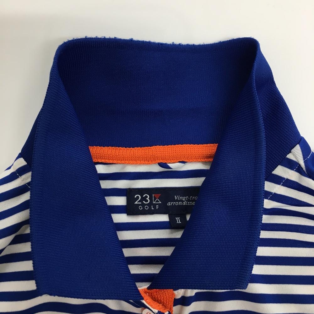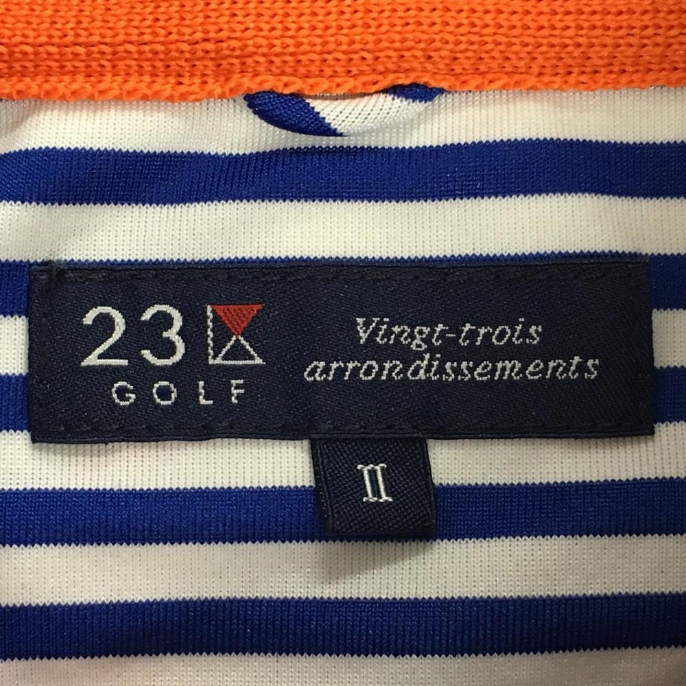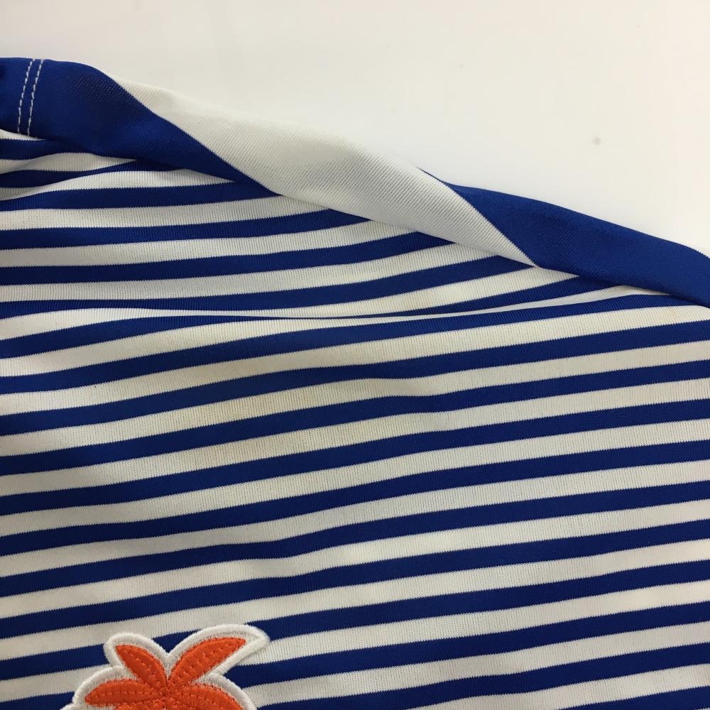 23区ゴルフ 半袖ポロシャツ ブルー×白 ボーダー フレンチスリーブ ヤシの木ワッペン レディース II(L) ゴルフウェア 23区
