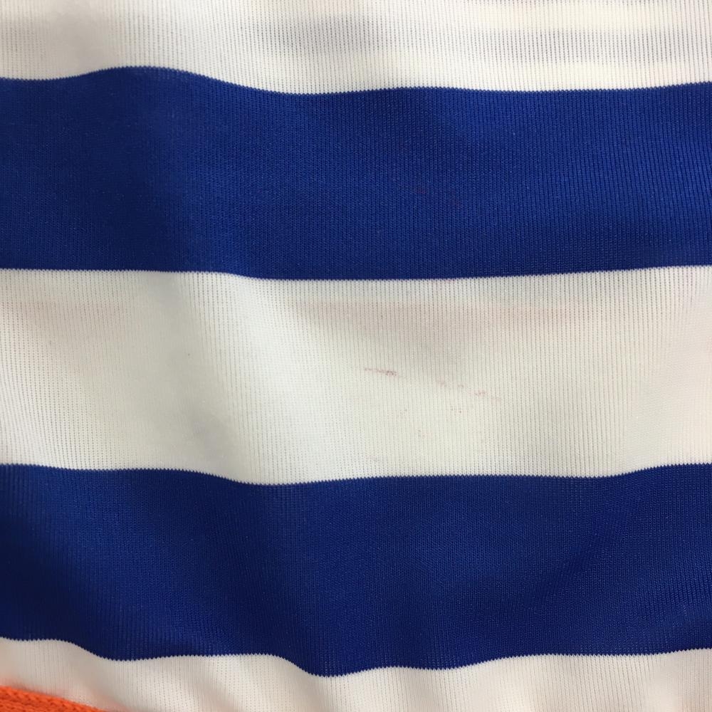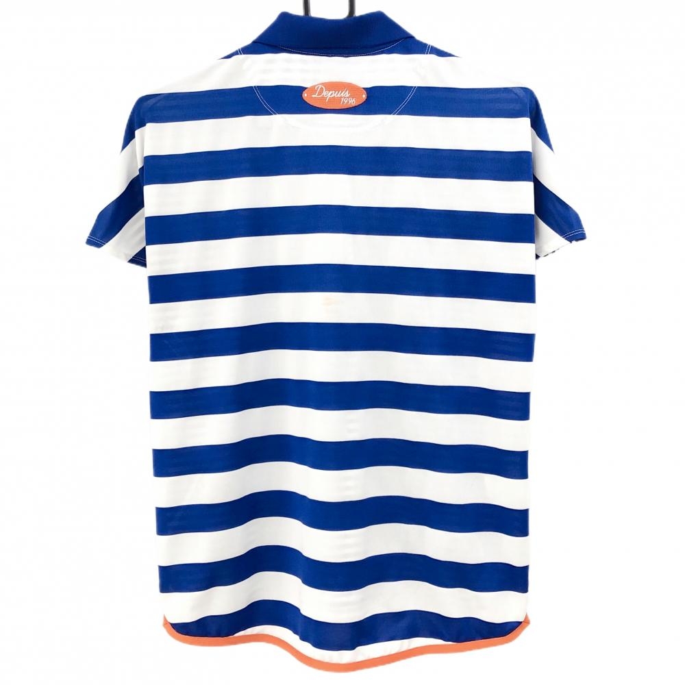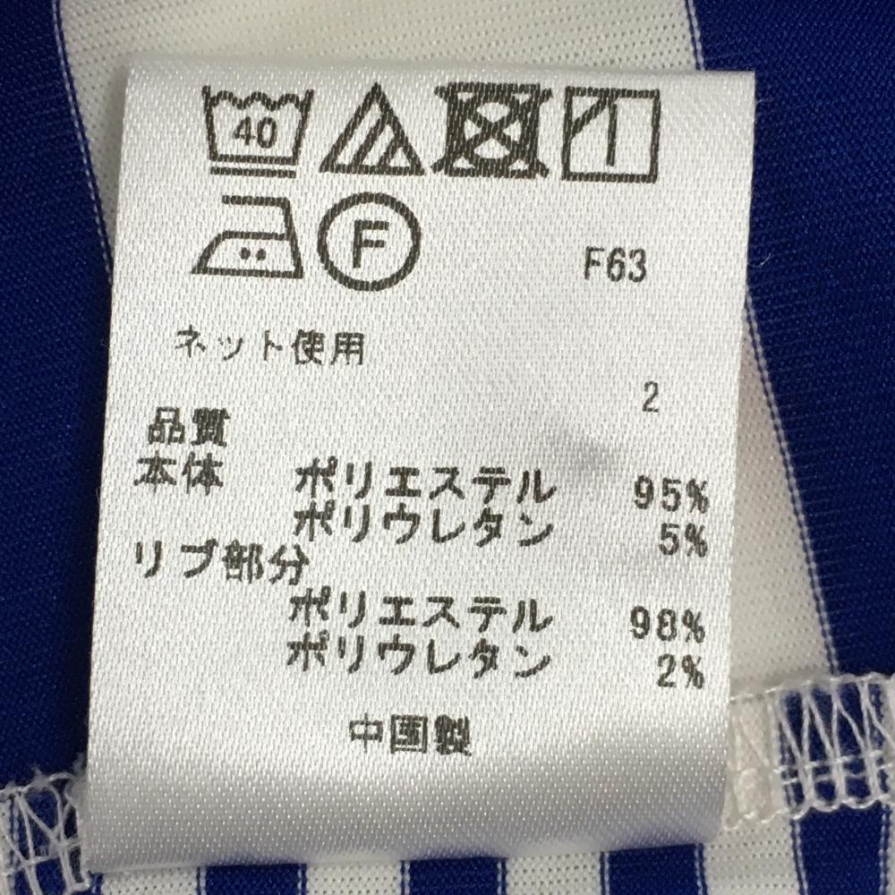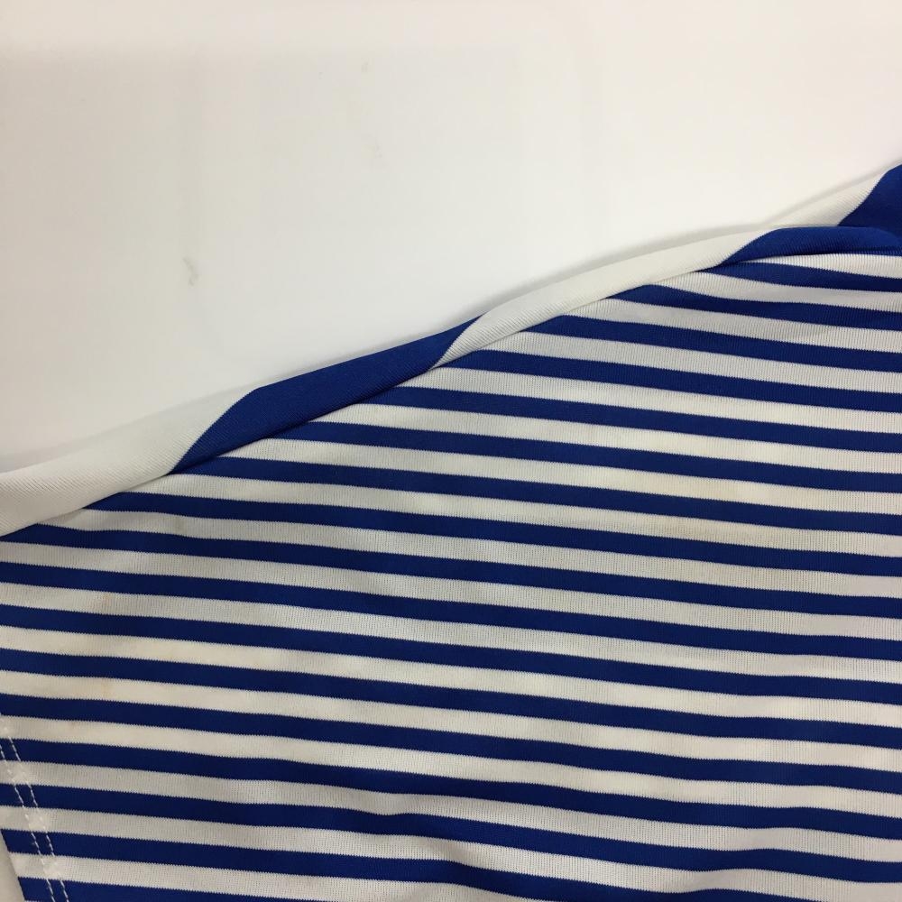 23区ゴルフ 半袖ポロシャツ ブルー×白 ボーダー フレンチスリーブ ヤシの木ワッペン レディース II(L) ゴルフウェア 23区