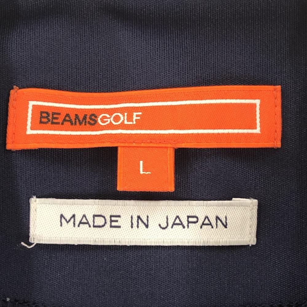 ビームスゴルフ 半袖ハイネックシャツ ネイビー ロゴ白 ストレッチ メンズ L ゴルフウェア BEAMS GOLF