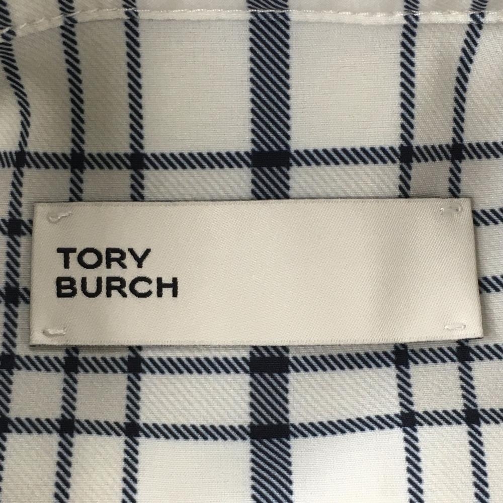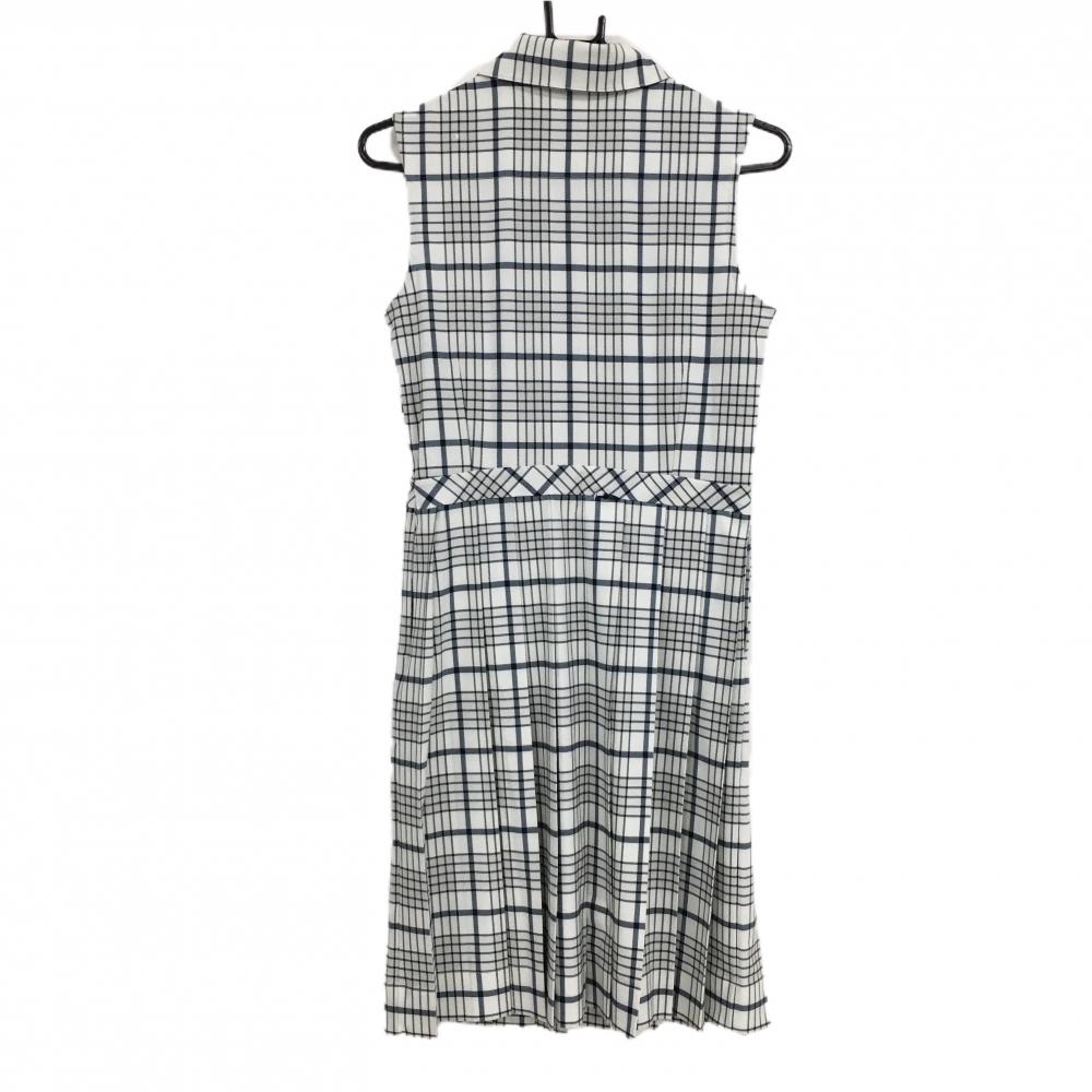 【超美品】トリーバーチ ノースリーブワンピース 白×ネイビー チェック プリーツ レディース S ゴルフウェア TORY BURCH