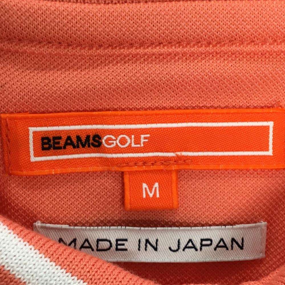 【超美品】ビームスゴルフ 半袖ポロシャツ サーモンピンク×白 襟ロゴ メンズ M ゴルフウェア BEAMS GOLF