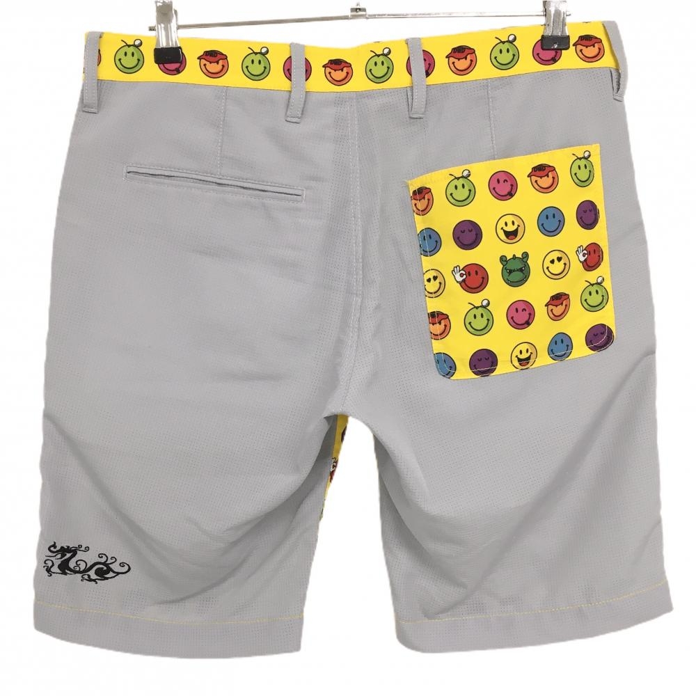 ダンスウィズドラゴン ハーフパンツ イエロー×グレー 前面ニコちゃん チビドラ メンズ 3(L) ゴルフウェア Dance With Dragon