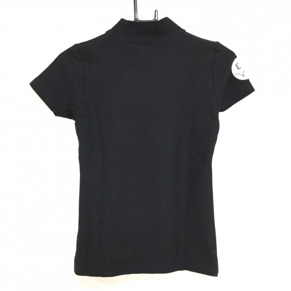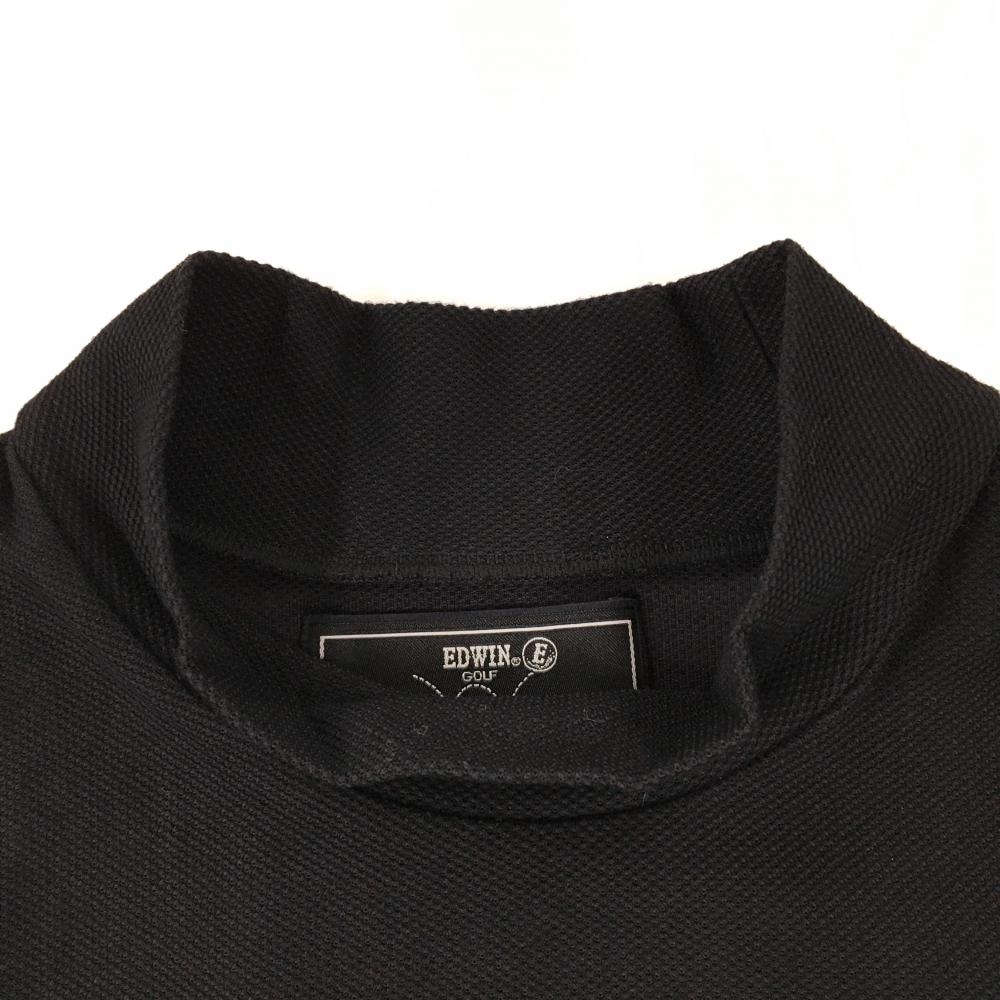 【美品】エドウィンゴルフ 半袖ハイネックシャツ ダークネイビー×白 胸元ロゴライン レディース S ゴルフウェア EDWIN GOLF