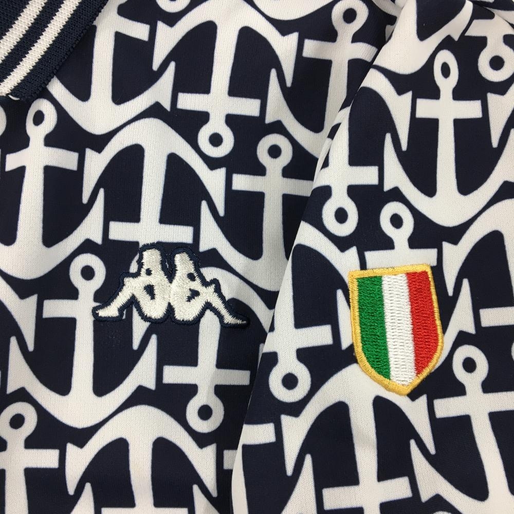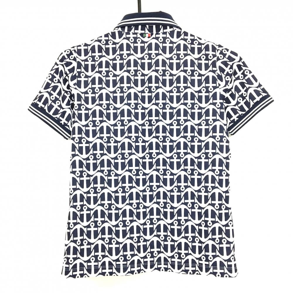 【美品】カッパ 半袖ポロシャツ ネイビー×白 イカリ柄 胸元ロゴ レディース S ゴルフウェア Kappa