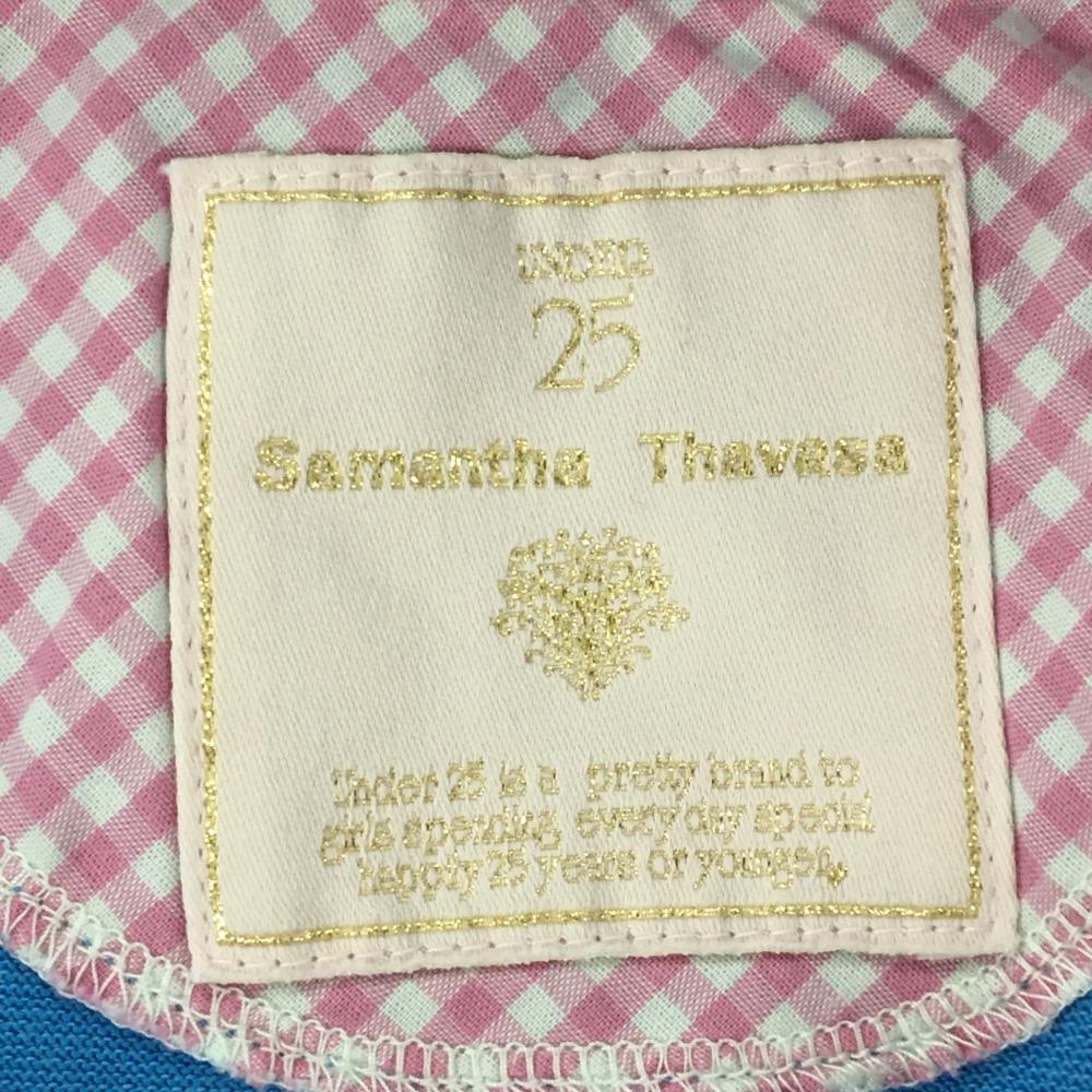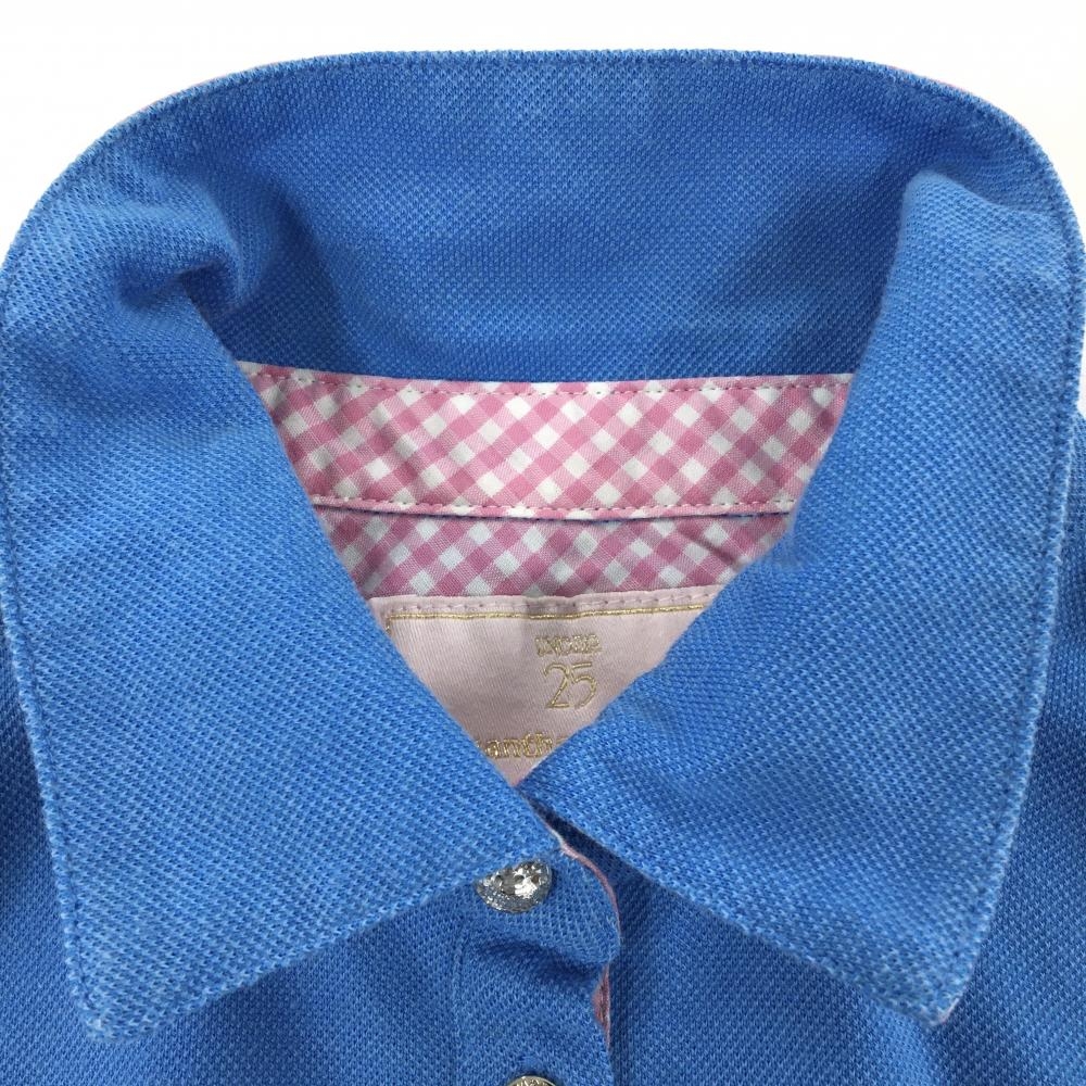 サマンサタバサUNDER25 半袖ポロシャツ ライトブルー×白 袖刺しゅう レディース M ゴルフウェア Samantha Thavasa