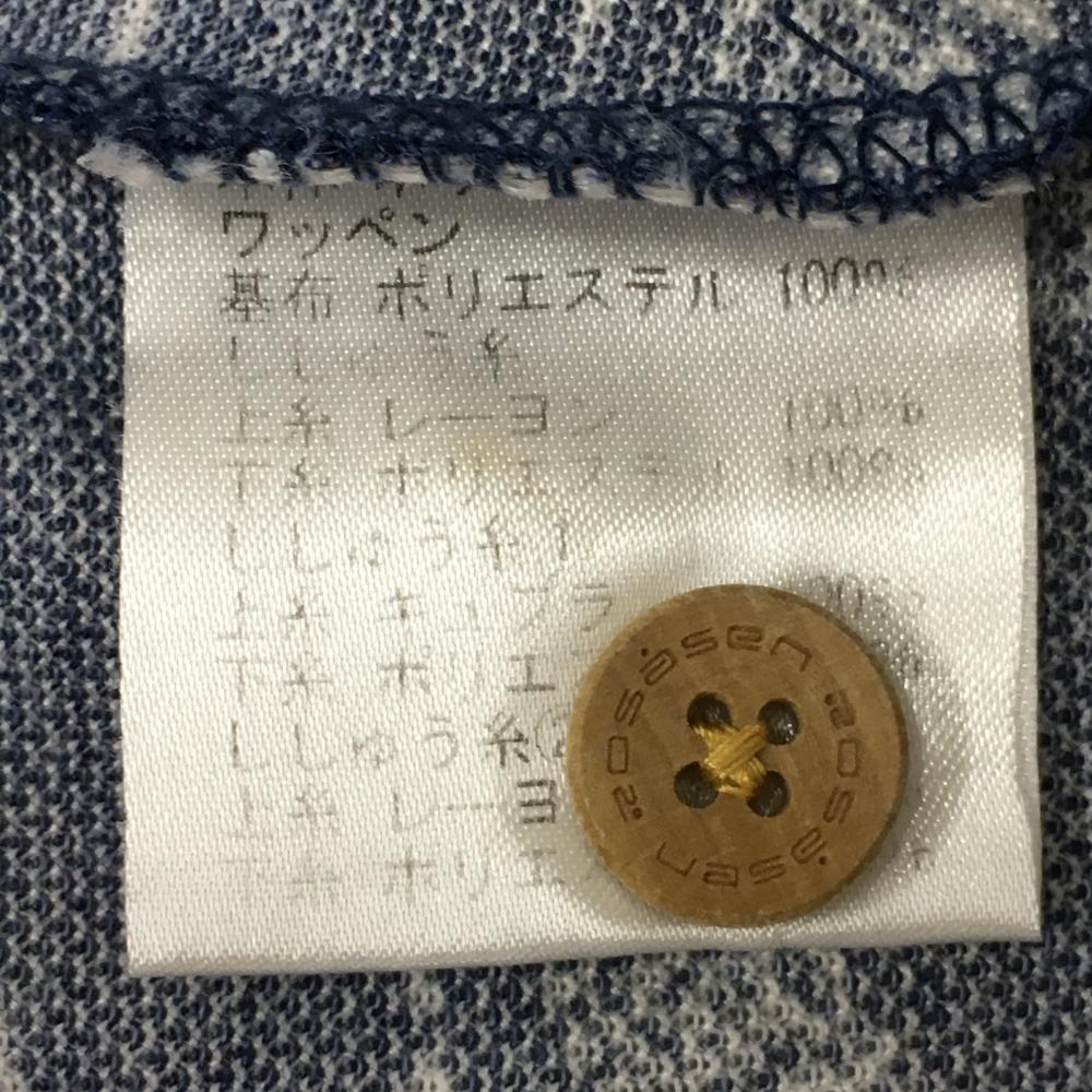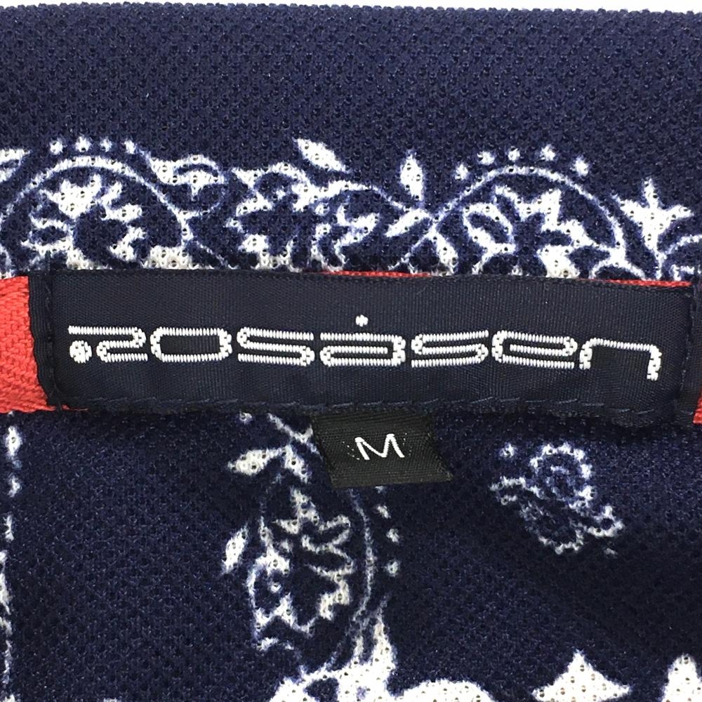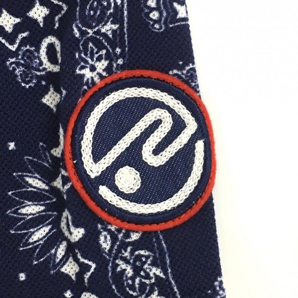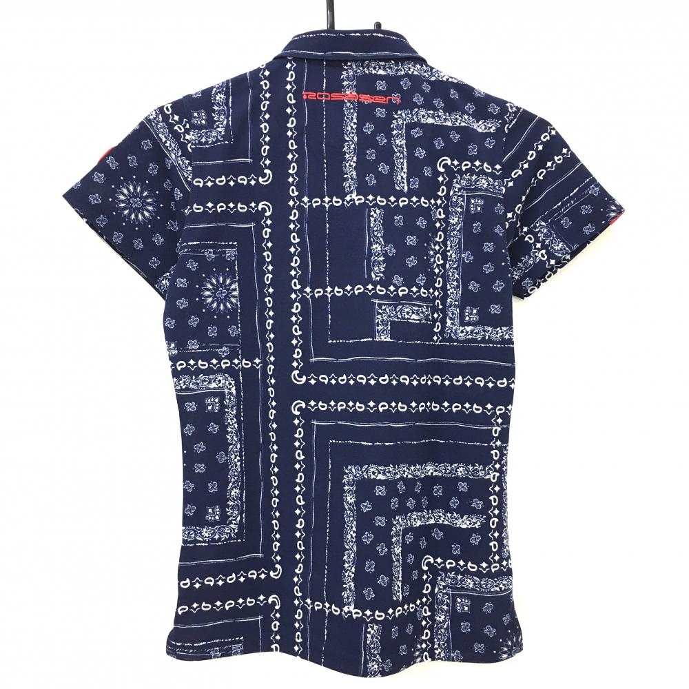 【美品】ロサーセン 半袖ポロシャツ ネイビー×白 総柄 袖ワッペン レディース M ゴルフウェア Rosasen