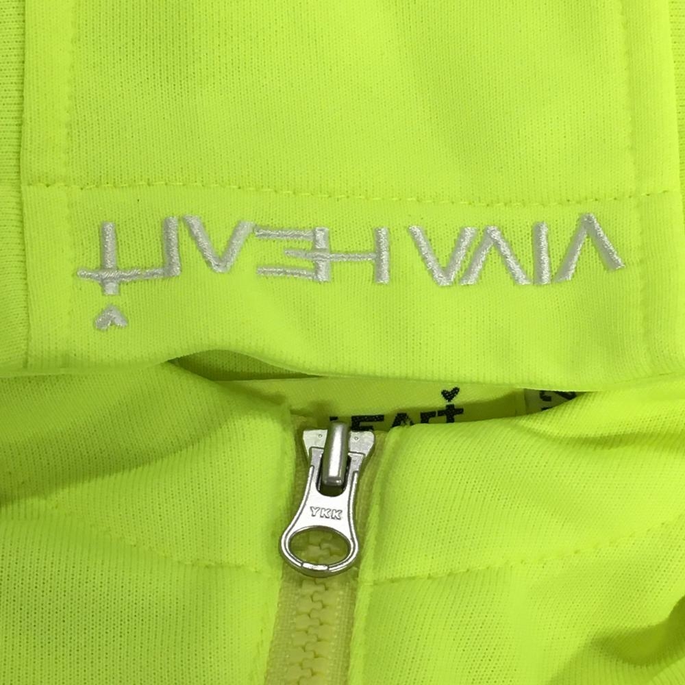 ビバハート パーカー 蛍光イエロー×白 後ろロゴプリント ハーフジップ レディース 42(L) ゴルフウェア VIVA HEART