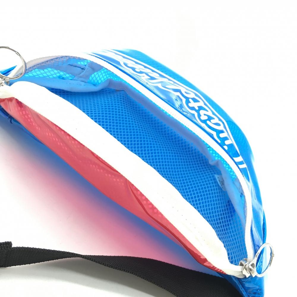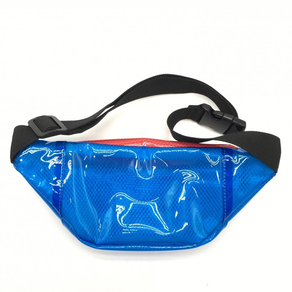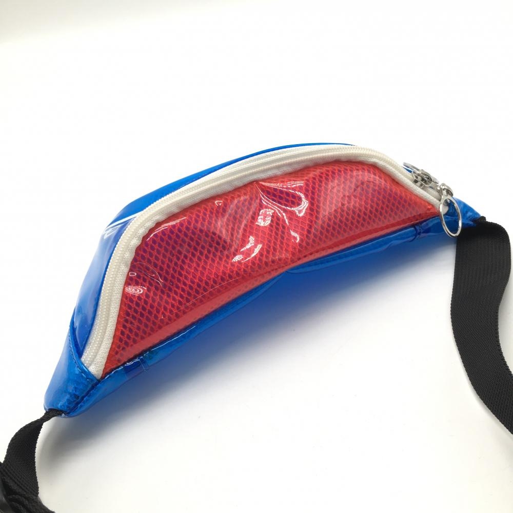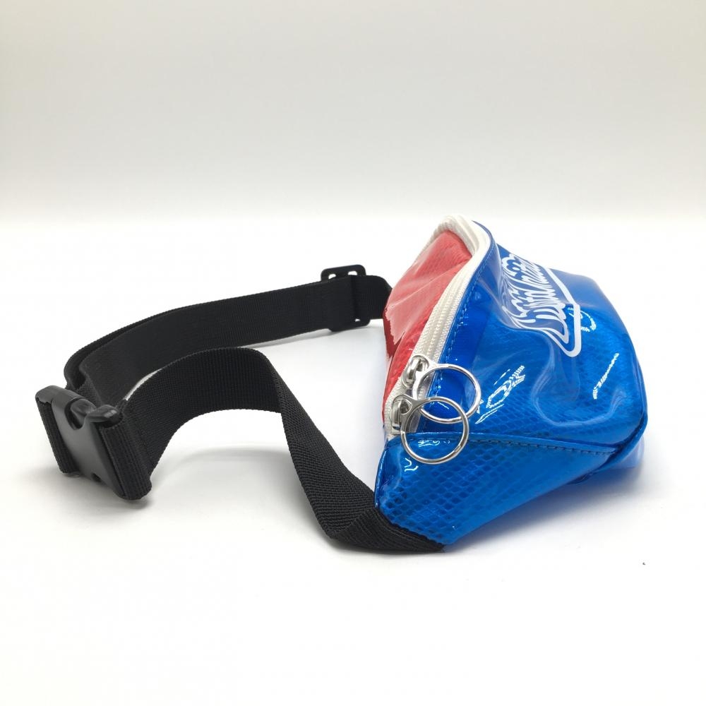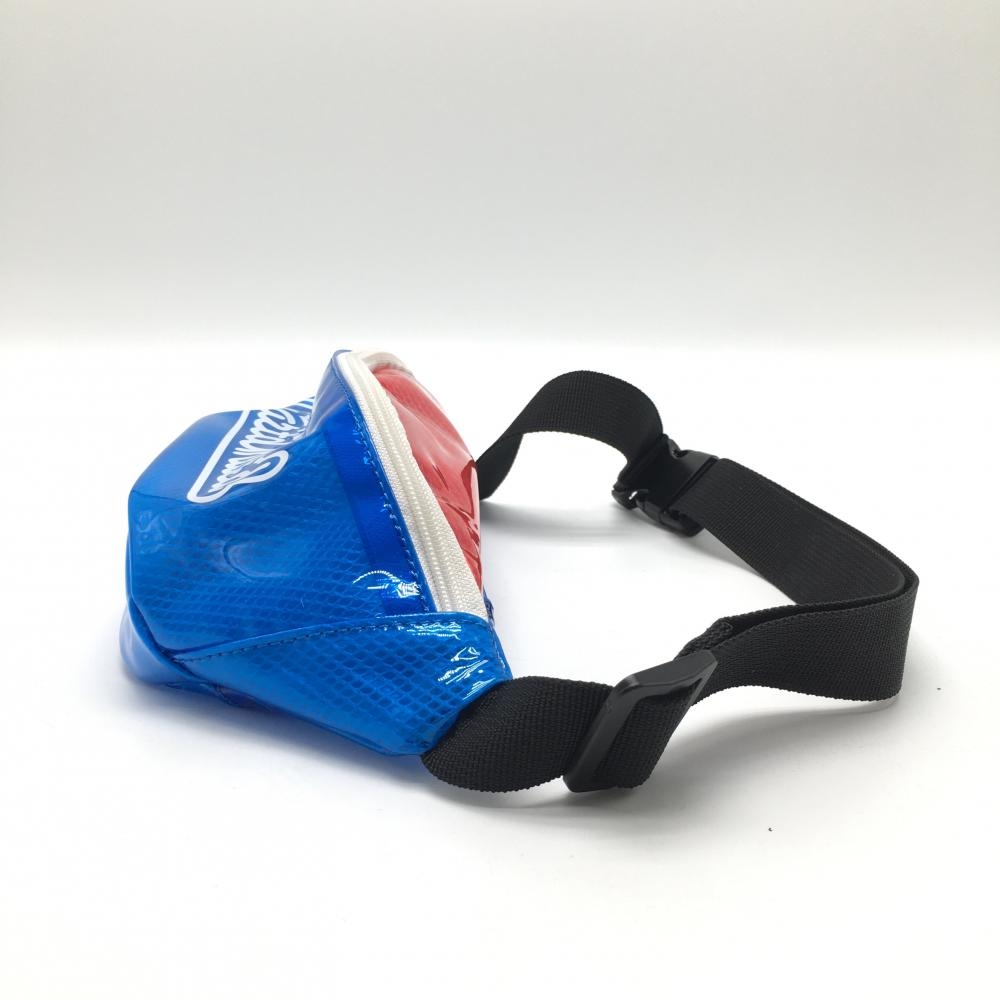 【美品】クアルトユナイテッド ウエストポーチ ブルー×レッド×白 ビニール クリア ボディバッグゴルフ CUARTO UNITED