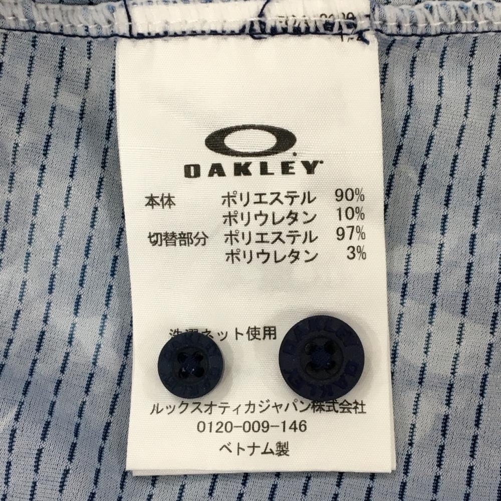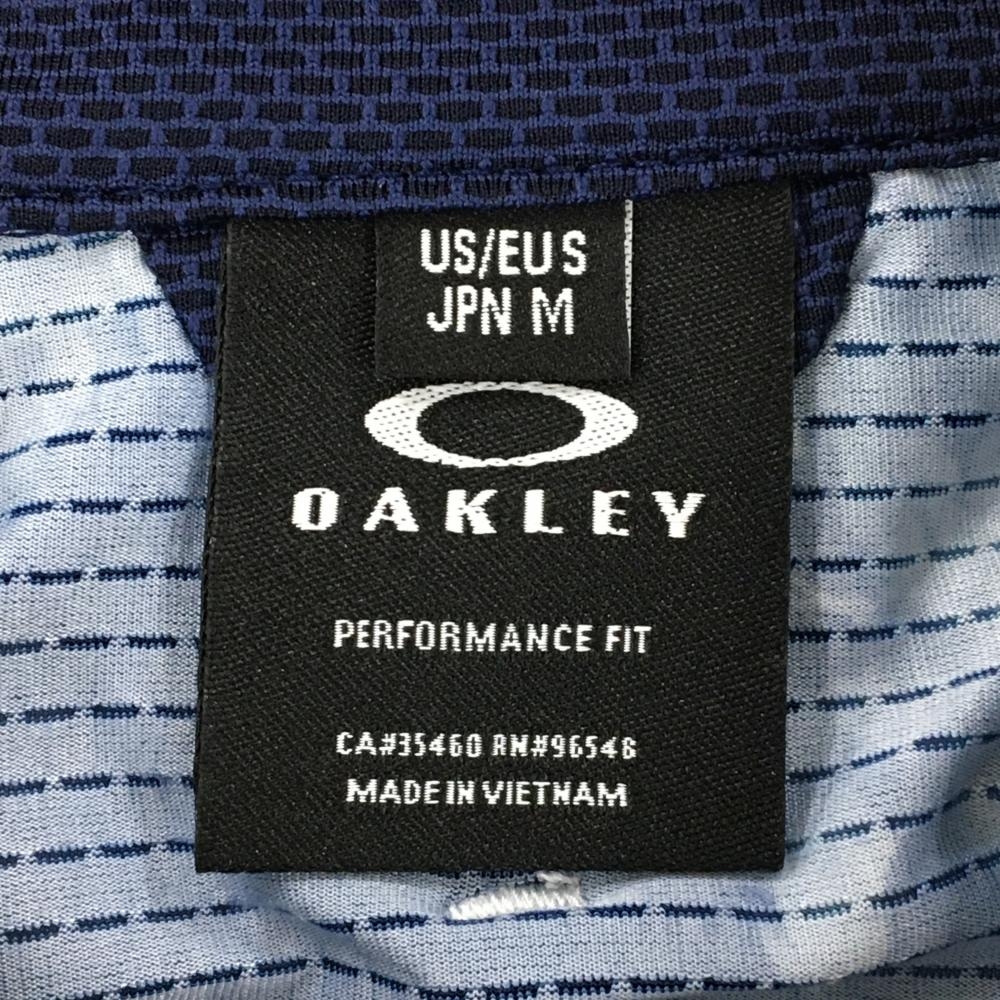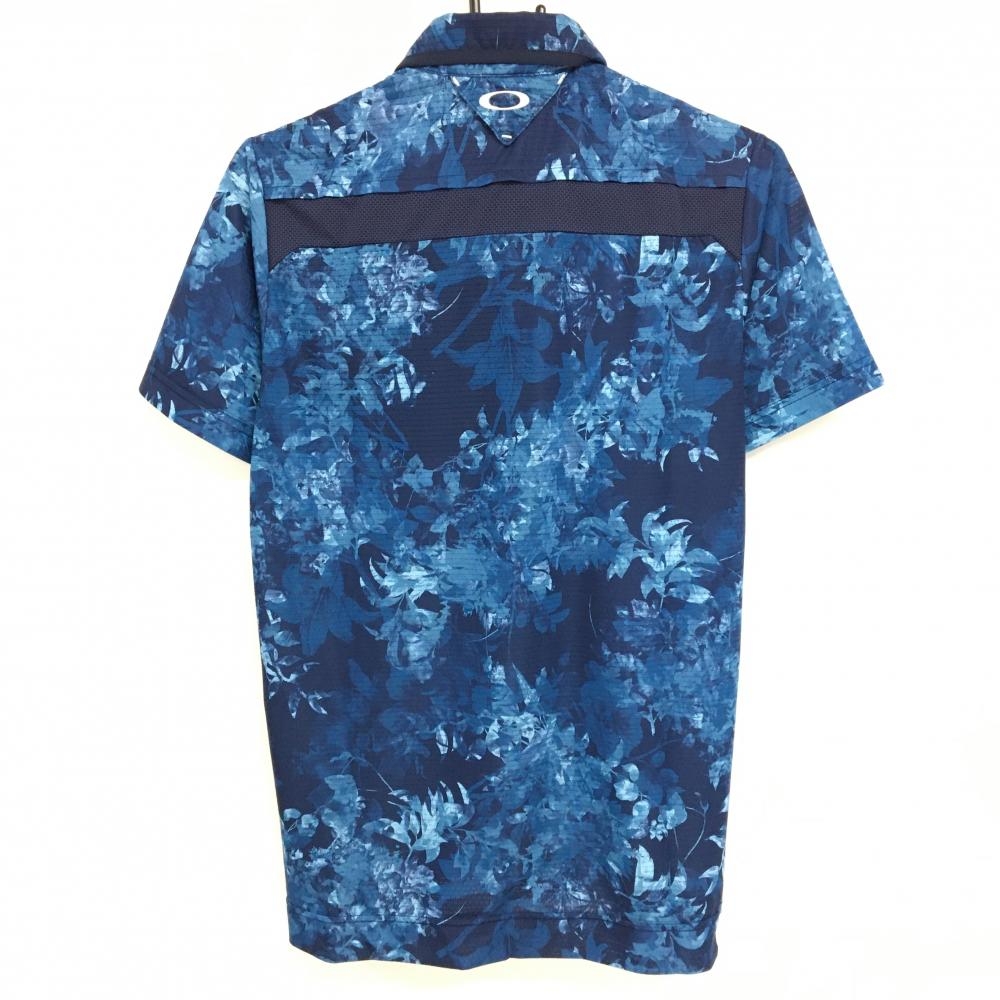 【超美品】オークリー 半袖ポロシャツ ネイビー×ライトブルー 花柄 胸ポケット メンズ M ゴルフウェア Oakley