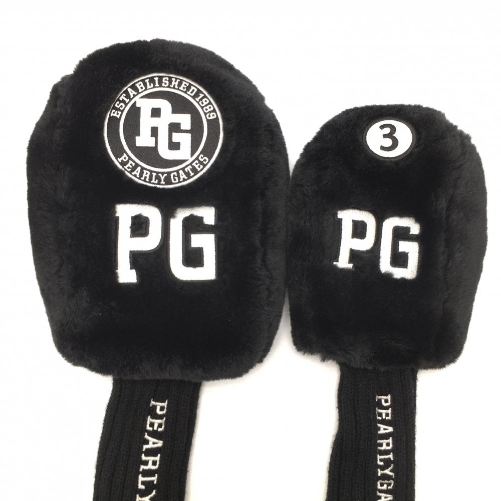 【美品】パーリーゲイツ ヘッドカバー2点セット(DR FW) 黒 ボアゴルフ PEARLY GATES