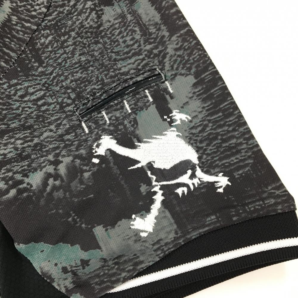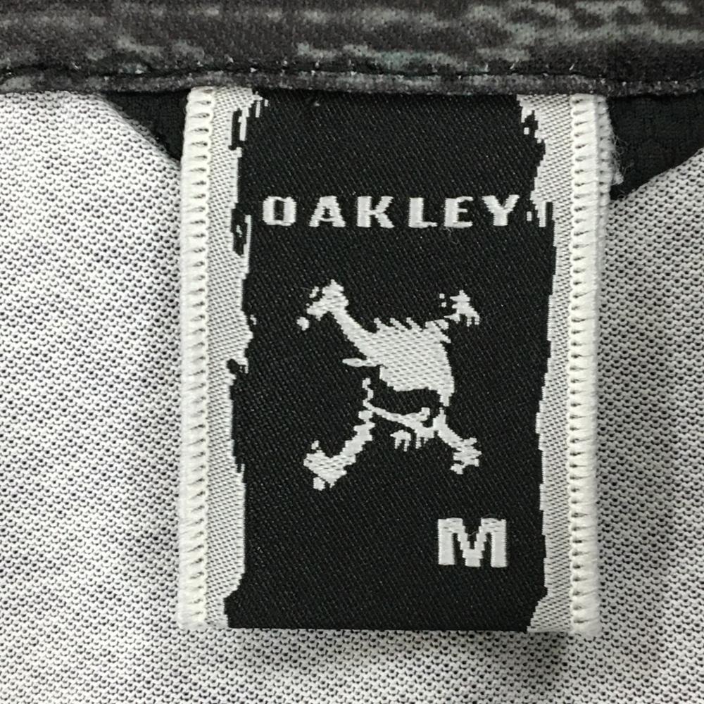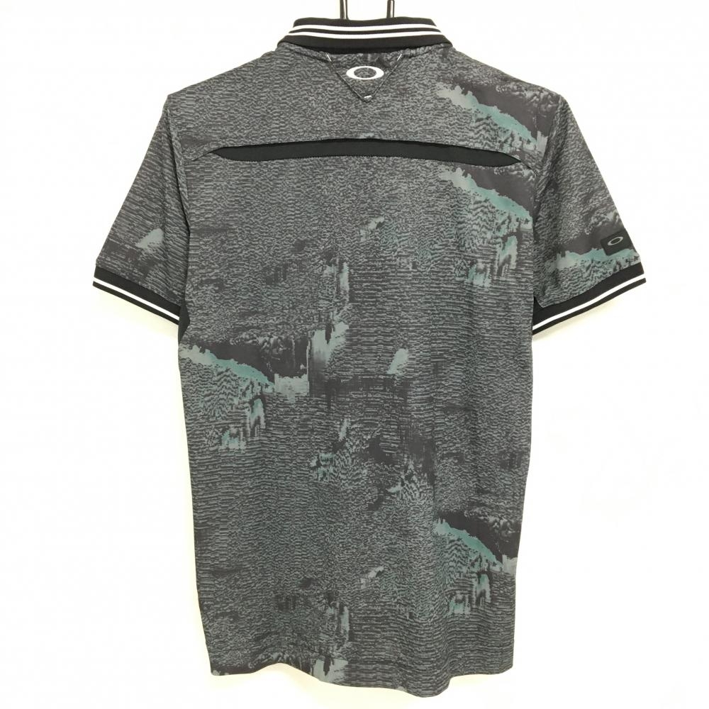 【超美品】オークリー 半袖ポロシャツ グレー×黒 総柄 ティー装着可 メンズ M ゴルフウェア Oakley