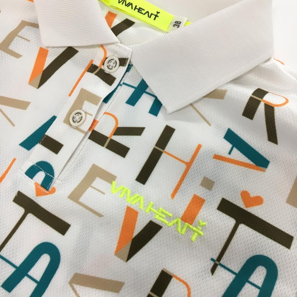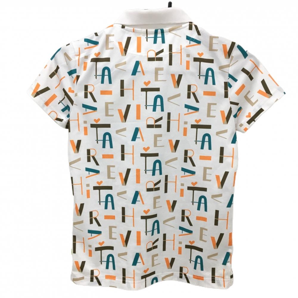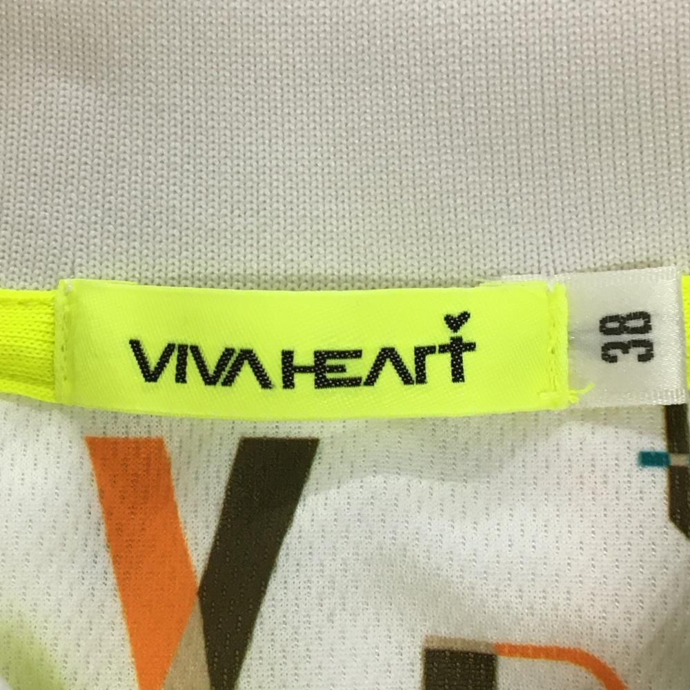 【超美品】ビバハート 半袖ポロシャツ 白×ブラウン ロゴ総柄 レディース 38(S) ゴルフウェア VIVA HEART