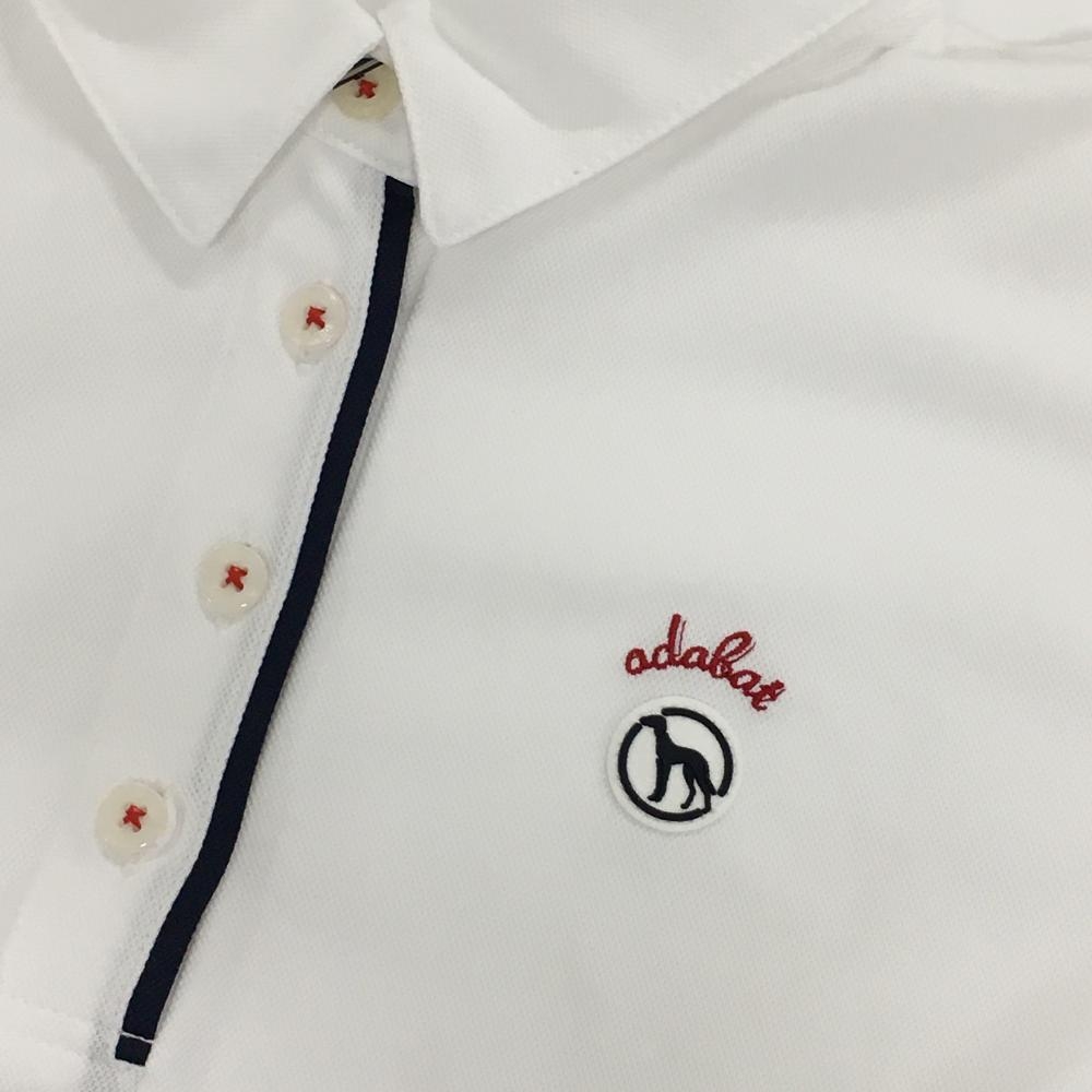 アダバット 半袖ポロシャツ 白×ネイビー シリコンロゴ レディース 38(M) ゴルフウェア adabat