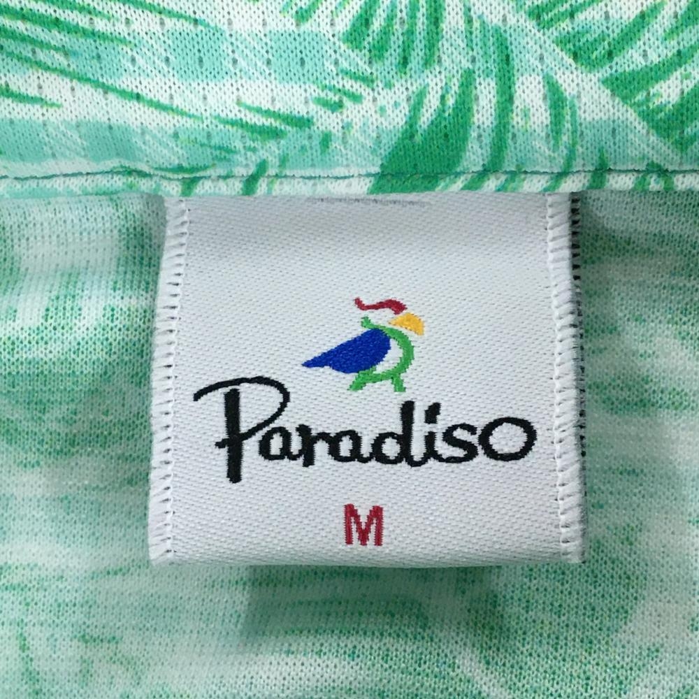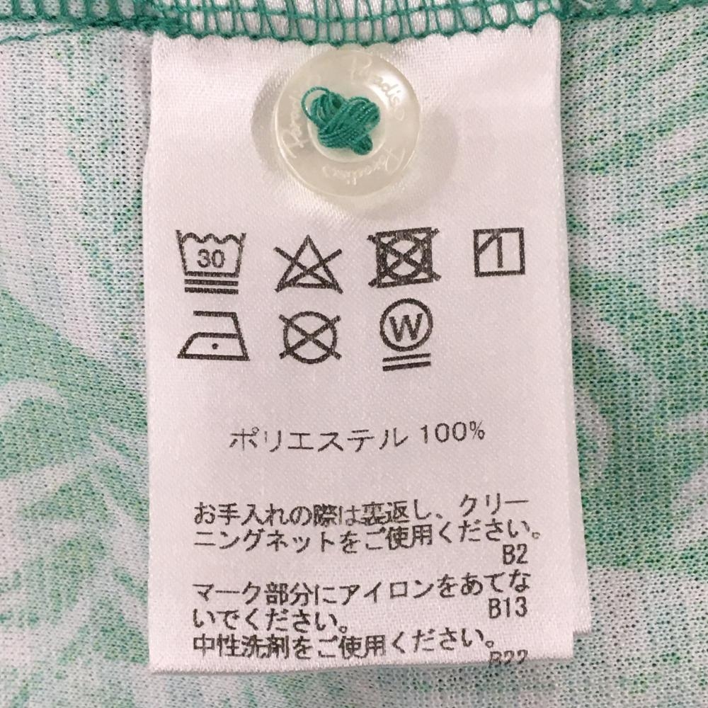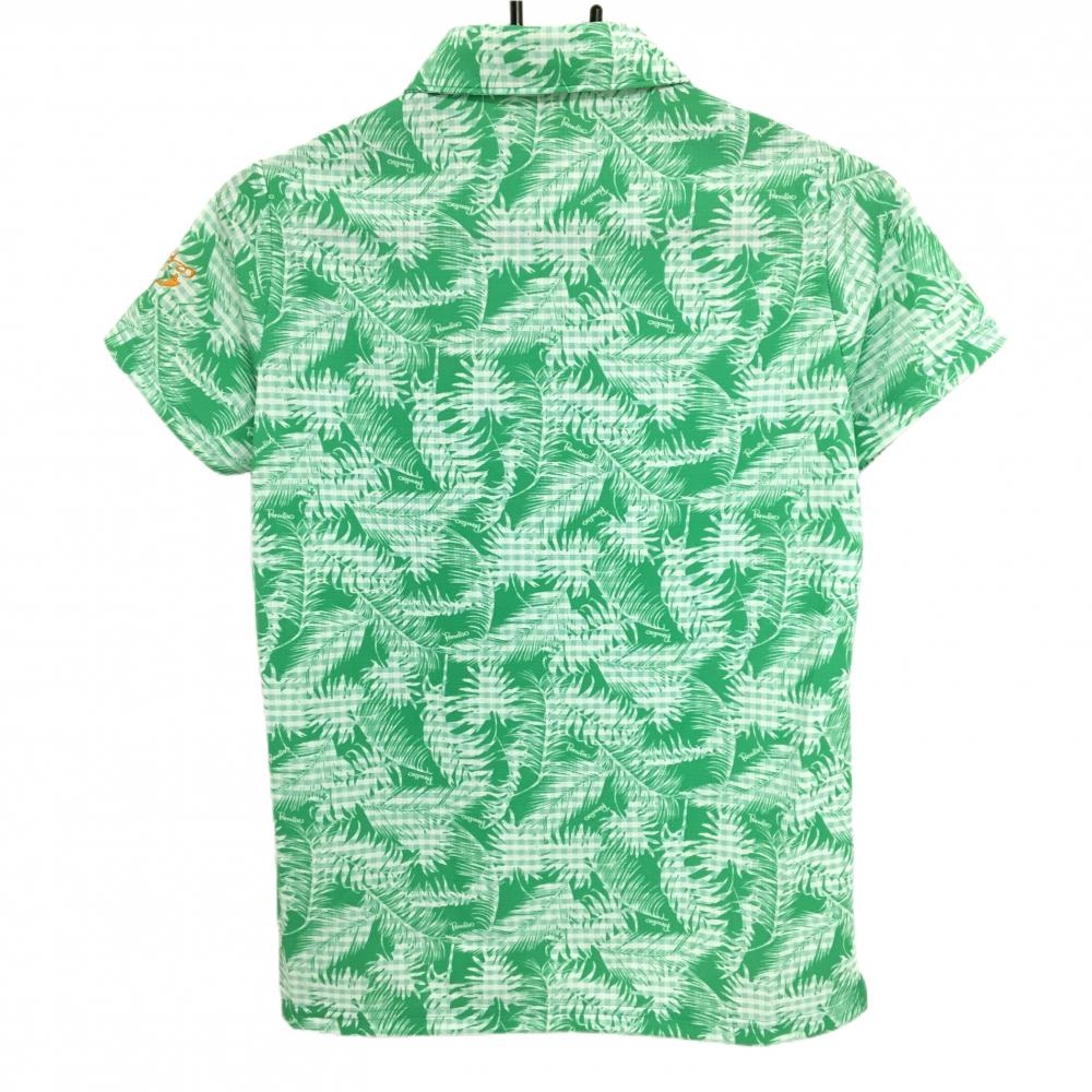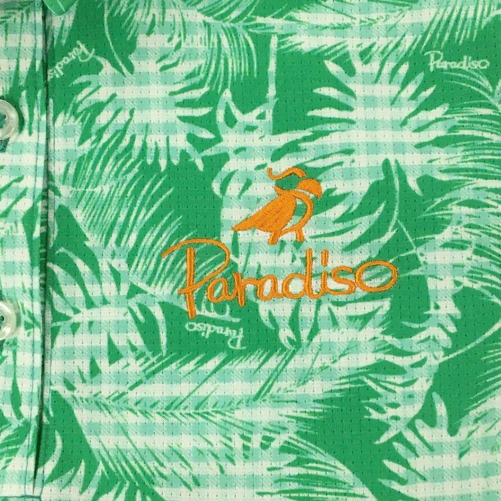 【超美品】パラディーゾ 半袖ポロシャツ グリーン×白 リーフ柄 レディース M ゴルフウェア Paradiso