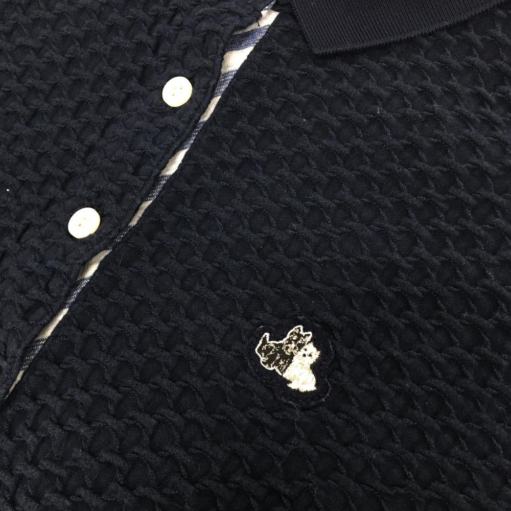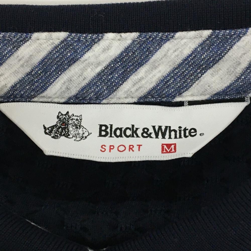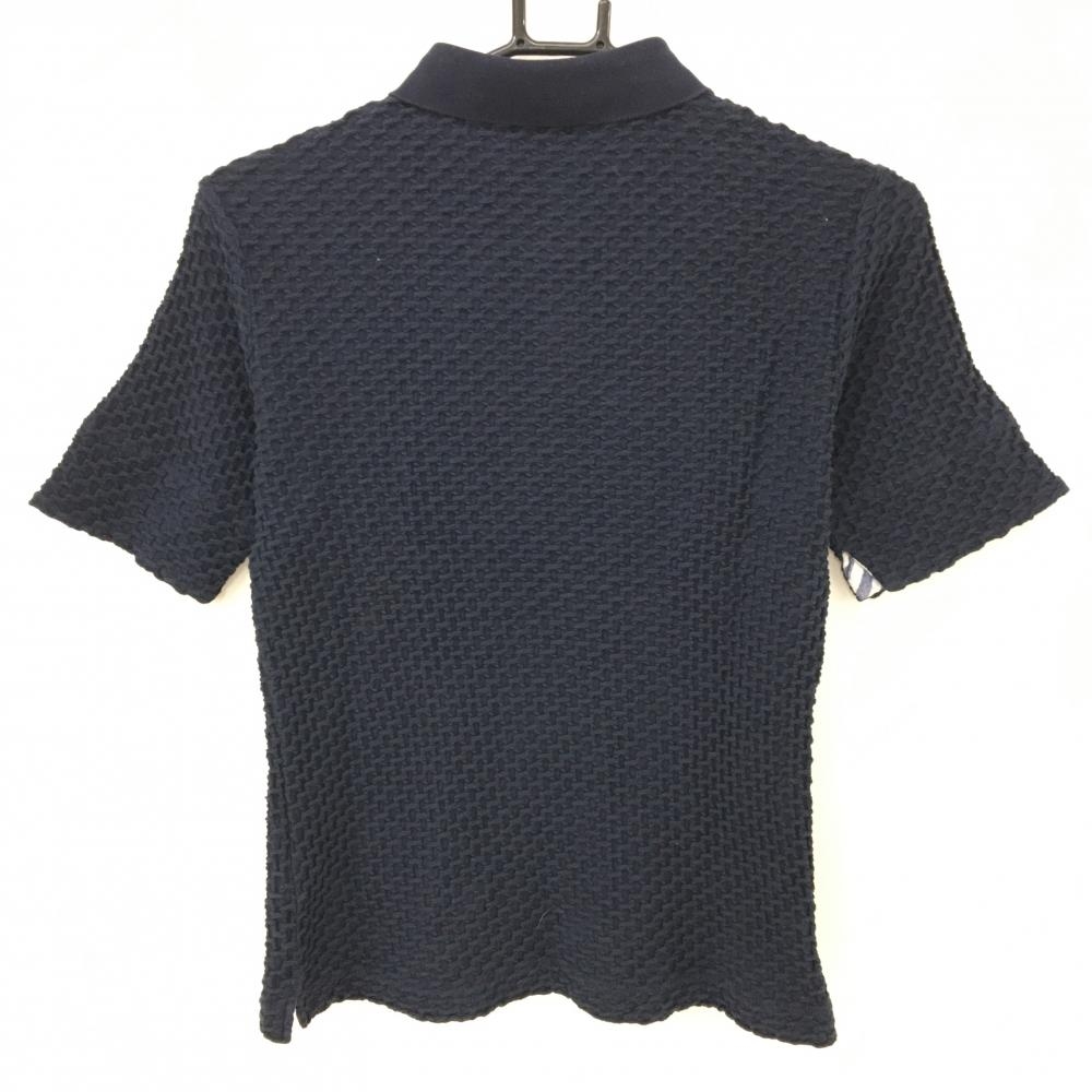【美品】ブラックアンドホワイト 半袖ポロシャツ ネイビー 凹凸生地 レディース M ゴルフウェア Black&White