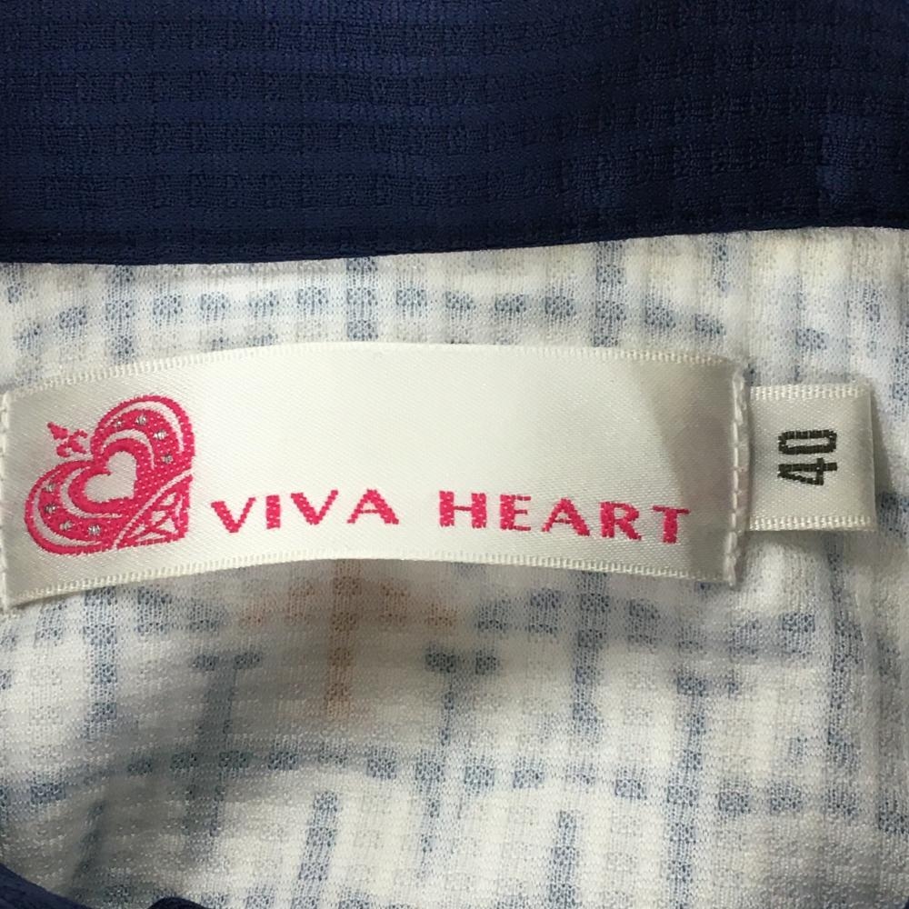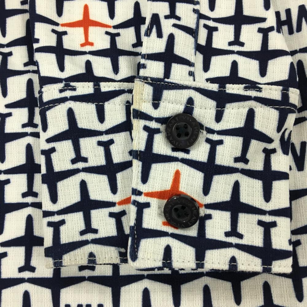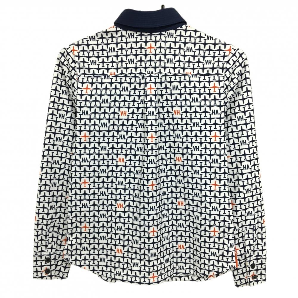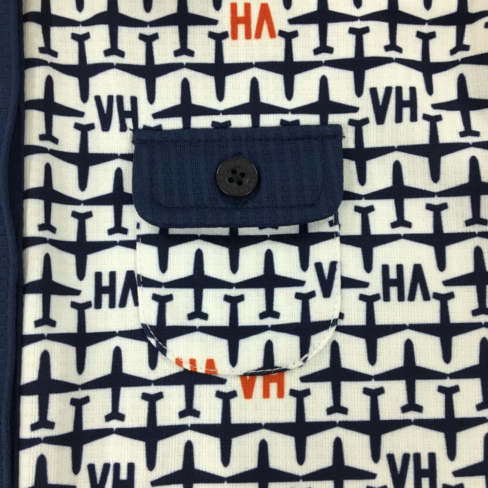 ビバハート 長袖シャツ 白×ネイビー 飛行機総柄 レディース 40(M) ゴルフウェア VIVA HEART