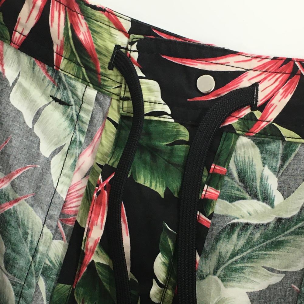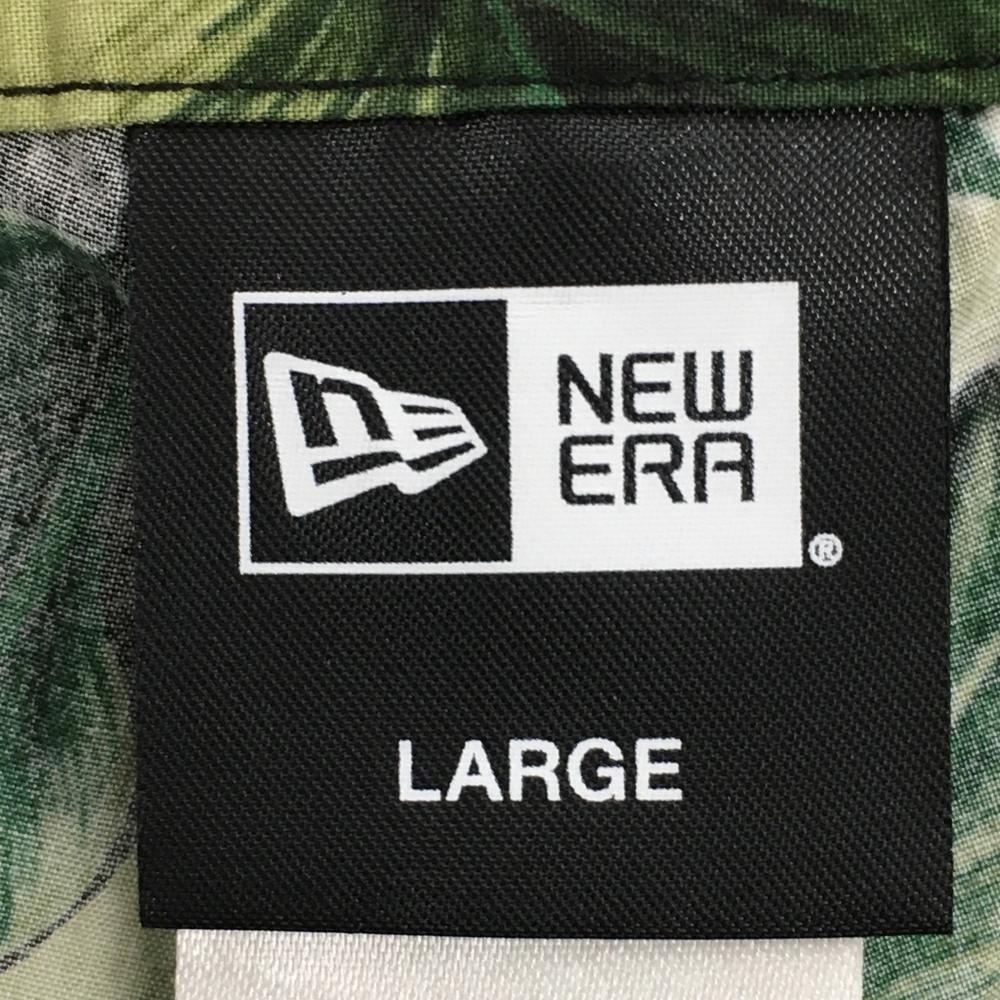 【美品】ニューエラ ハーフパンツ 黒×グリーン×レッド リーフ柄 ウエスト調節紐付 綿100% メンズ LARGE ゴルフウェア New Era