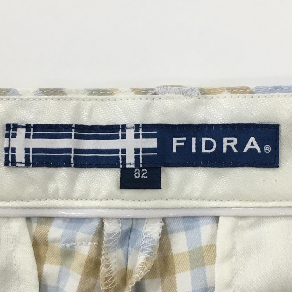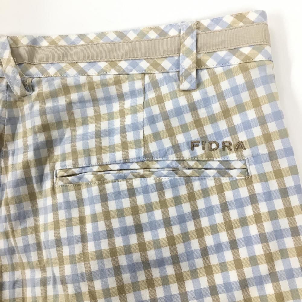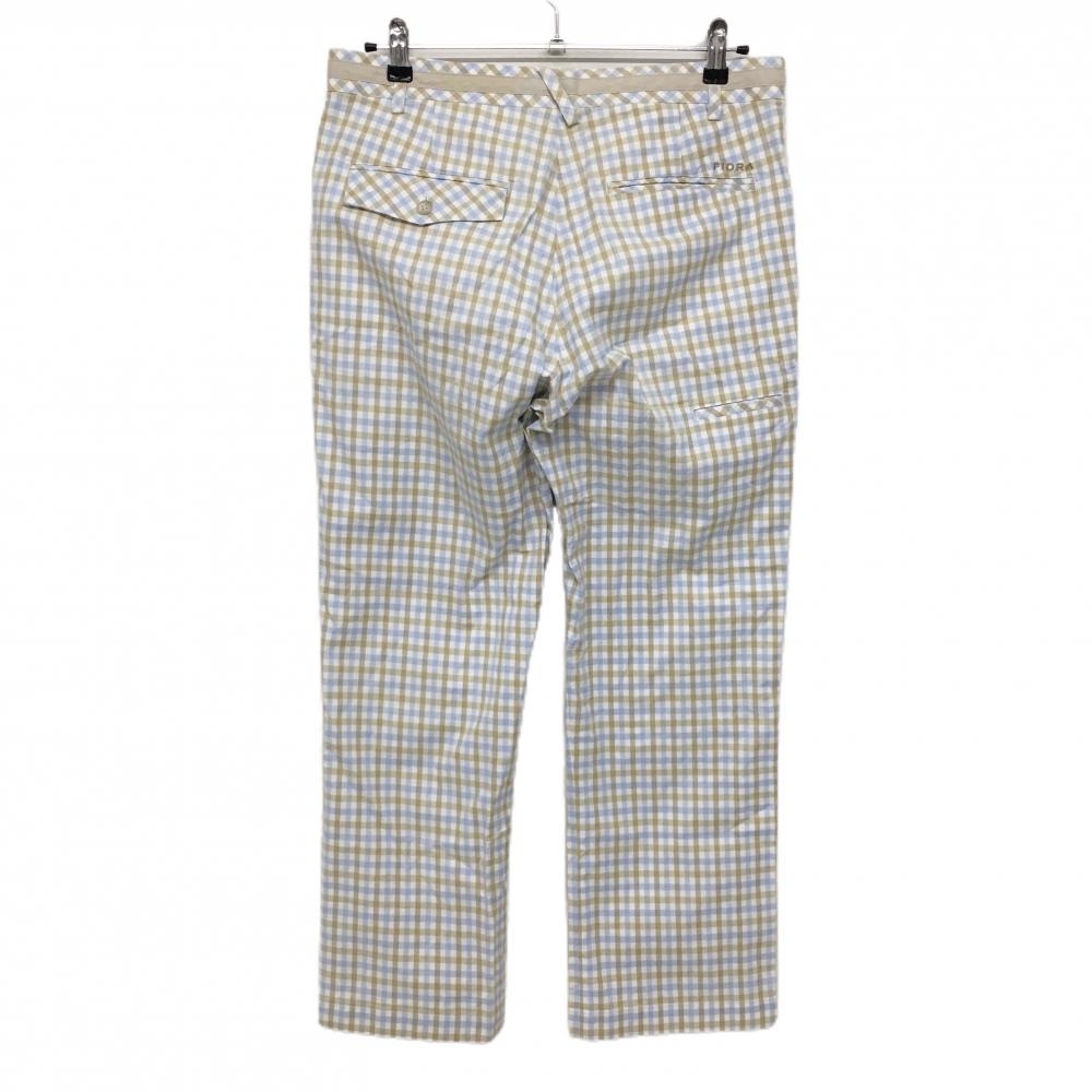 【美品】フィドラ パンツ ライトブルー×ベージュ チェック柄 バックロゴ メンズ 82 ゴルフウェア FIDRA