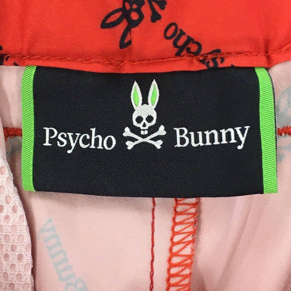 サイコバニー ハーフパンツ レッド×黒 ロゴ総柄 ウエスト一部ゴム メンズ L ゴルフウェア Psycho Bunny