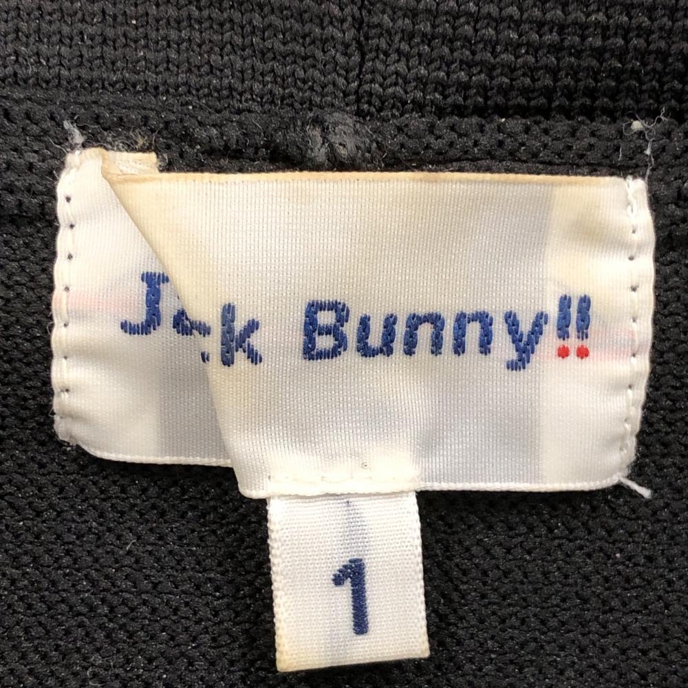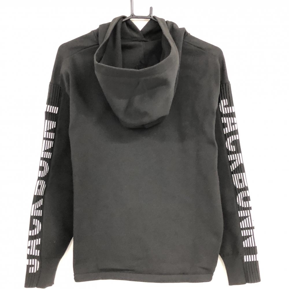【美品】ジャックバニー ニットパーカー 黒×白 袖ロゴ 裾ドローコード セーター レディース 1(M) ゴルフウェア 2024年モデル Jack Bunny