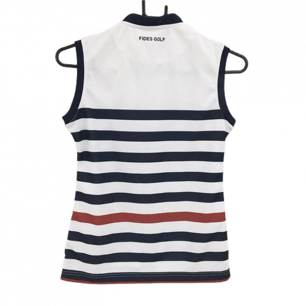 【超美品】フィデスゴルフ ノースリーブポロシャツ 白×ネイビー ハーフジップ ボーダー レディース S ゴルフウェア FIDES GOLF