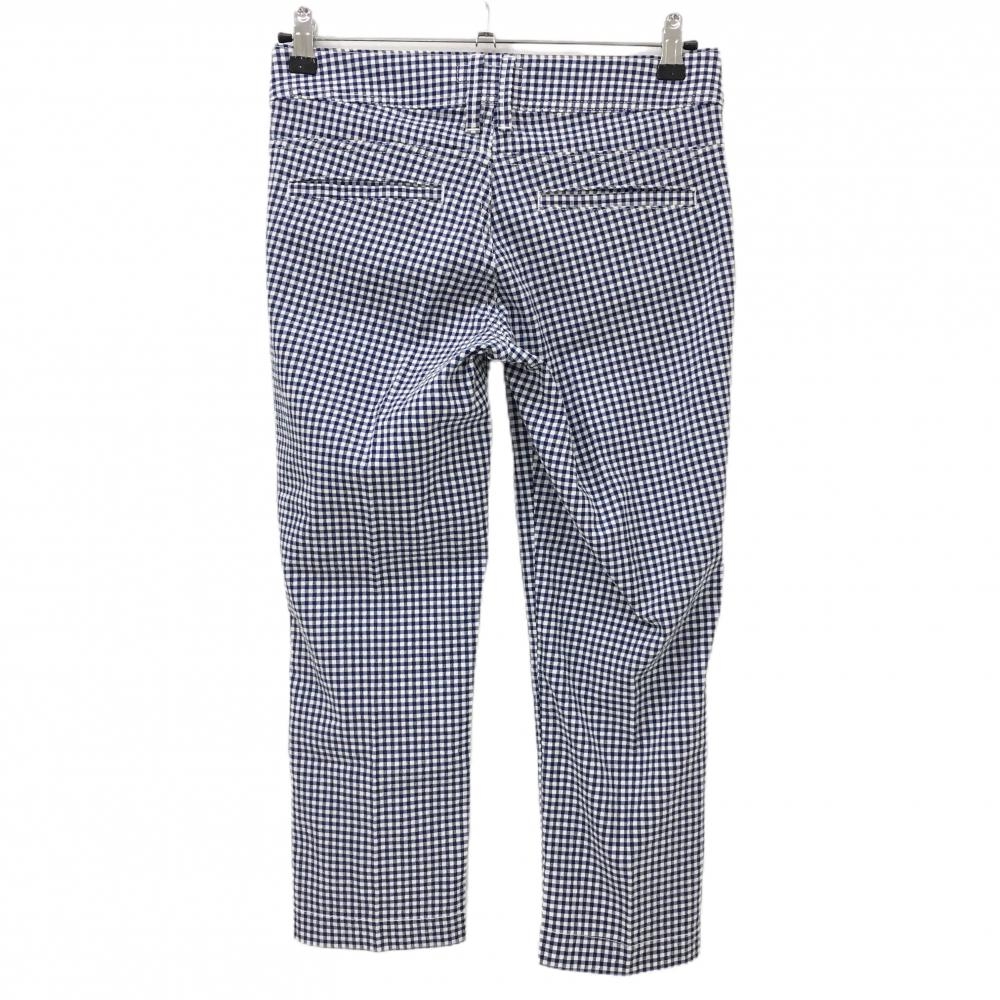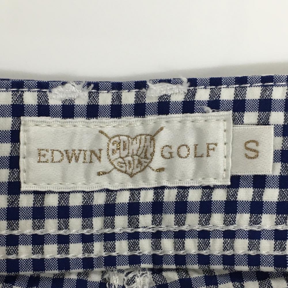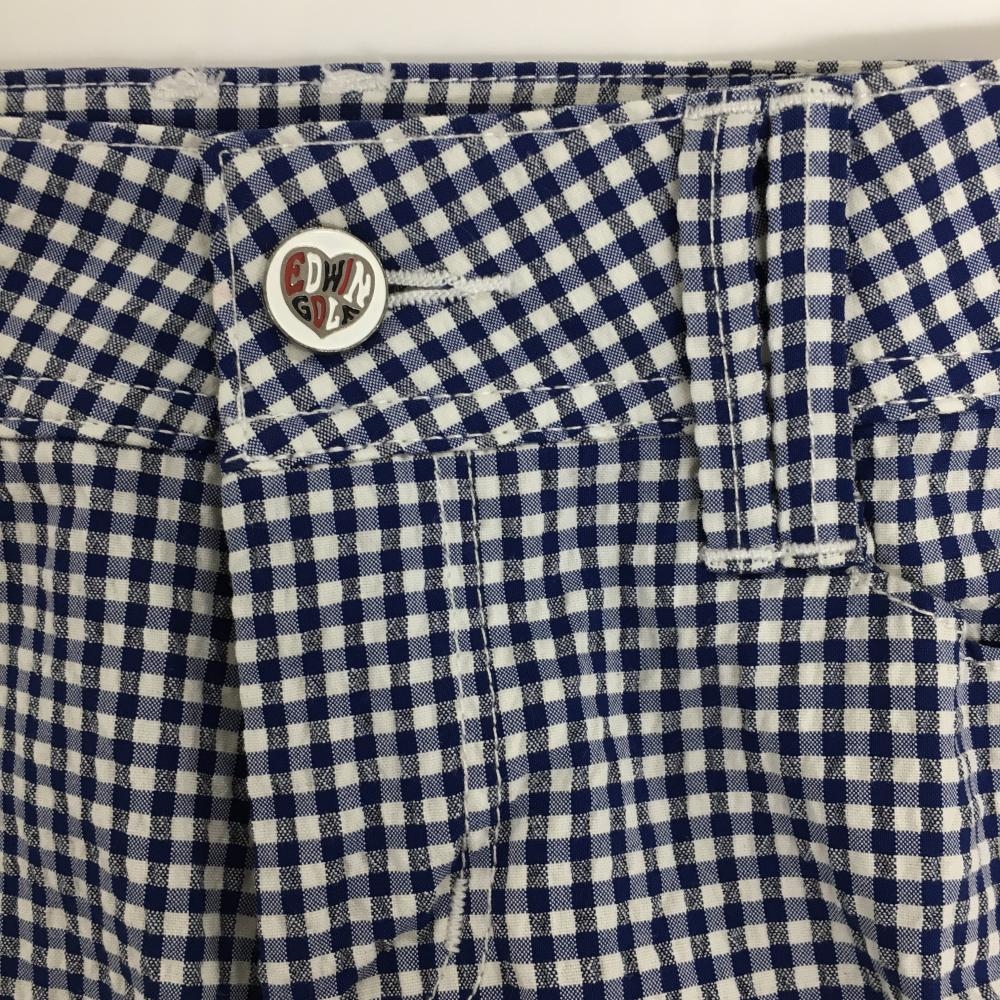 【美品】エドウィンゴルフ 半端丈パンツ ネイビー×白 チェック レディース S ゴルフウェア EDWIN GOLF