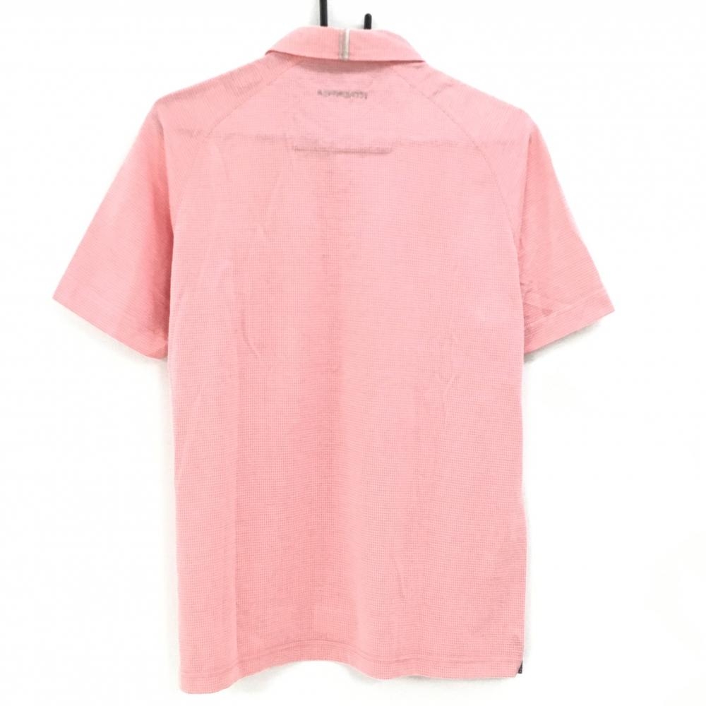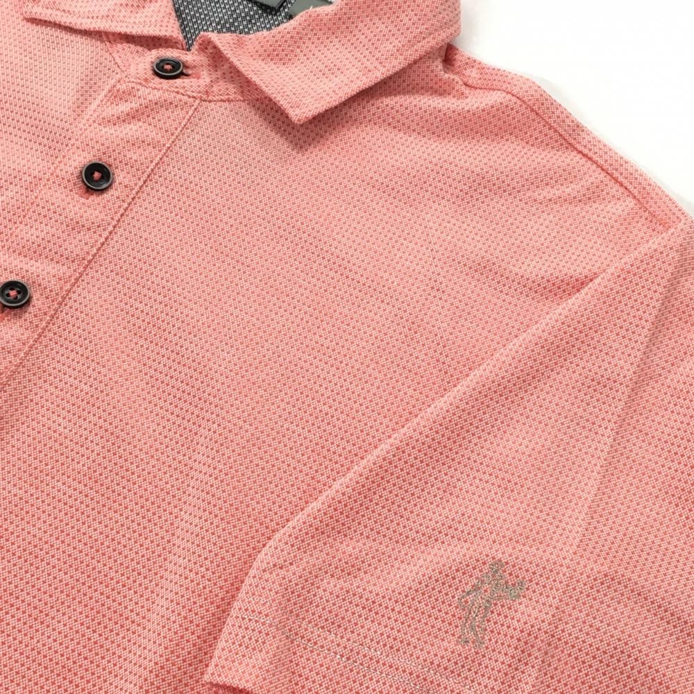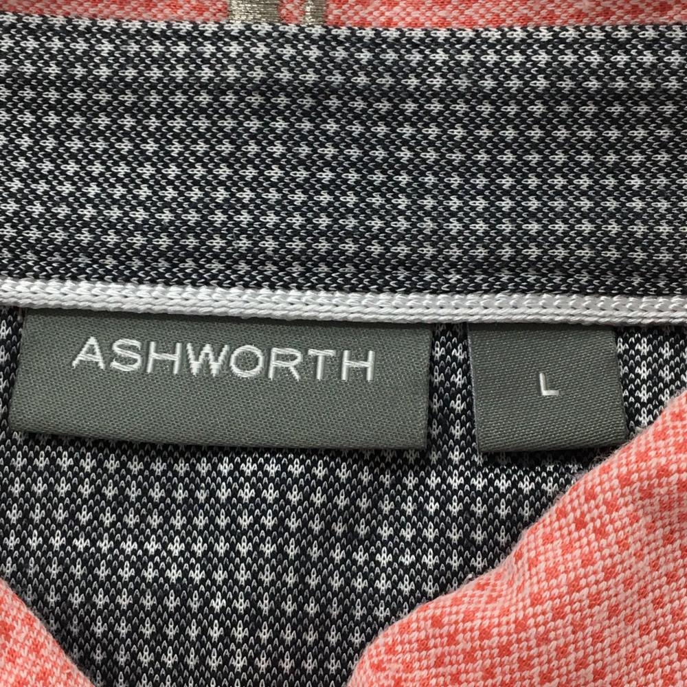 【超美品】アシュワース 半袖ポロシャツ オレンジピンク 地模様 袖ロゴ刺しゅう メンズ L ゴルフウェア ASHWORTH