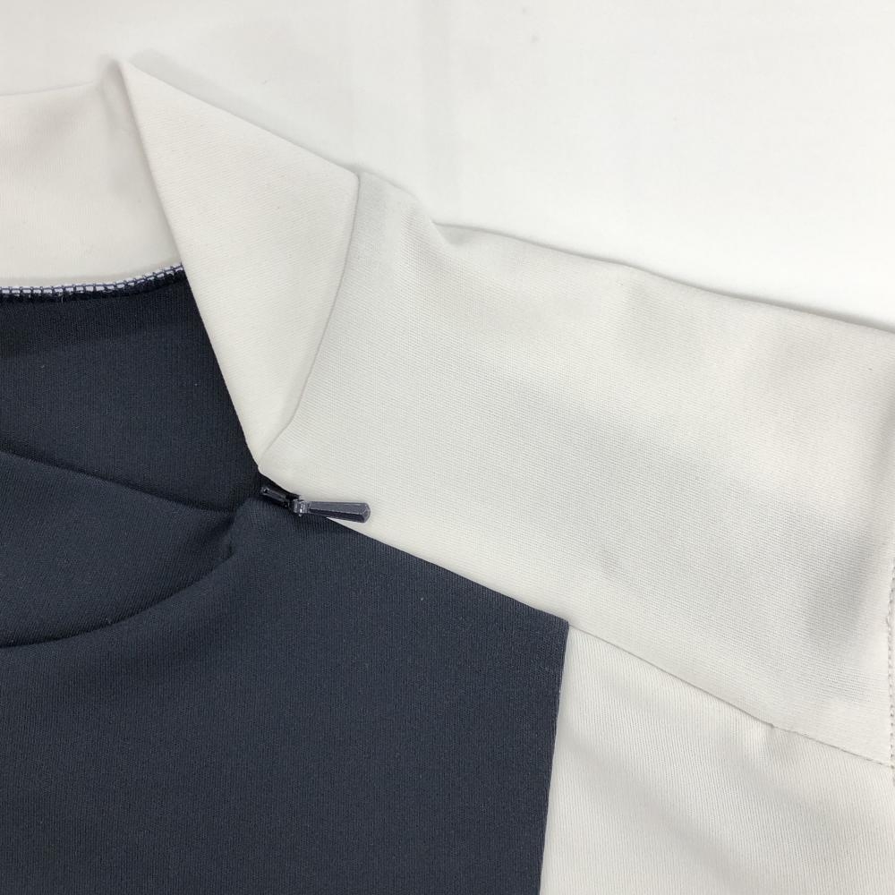 【美品】アダバット 半袖ハイネックシャツ ネイビー×白 肩ジップ レディース 40(L) ゴルフウェア adabat