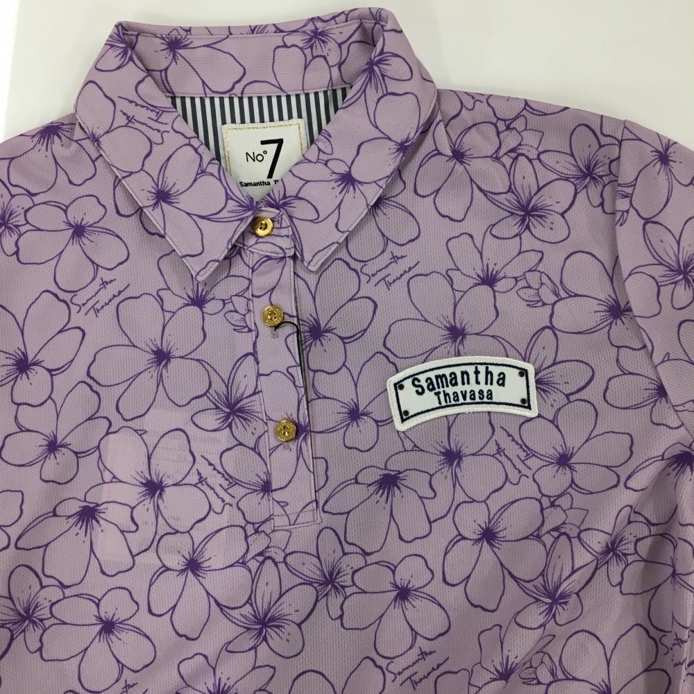 【新品】サマンサタバサNo7 半袖ポロシャツ パープル 花柄 レディース 38(M) ゴルフウェア Samantha Thavasa